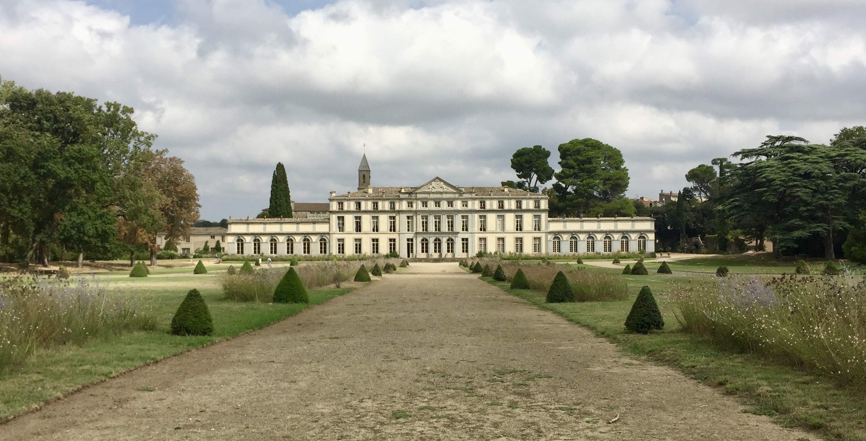 It was only in the 19th century that the central pavilion was added. The current owners, the Lorgeril family, married into the Pennautier family early in the 20th century. At that time, they added the coat of arms, which includes symbols of both the Pennautier (three stars) and Lorgeril (a duck) families.