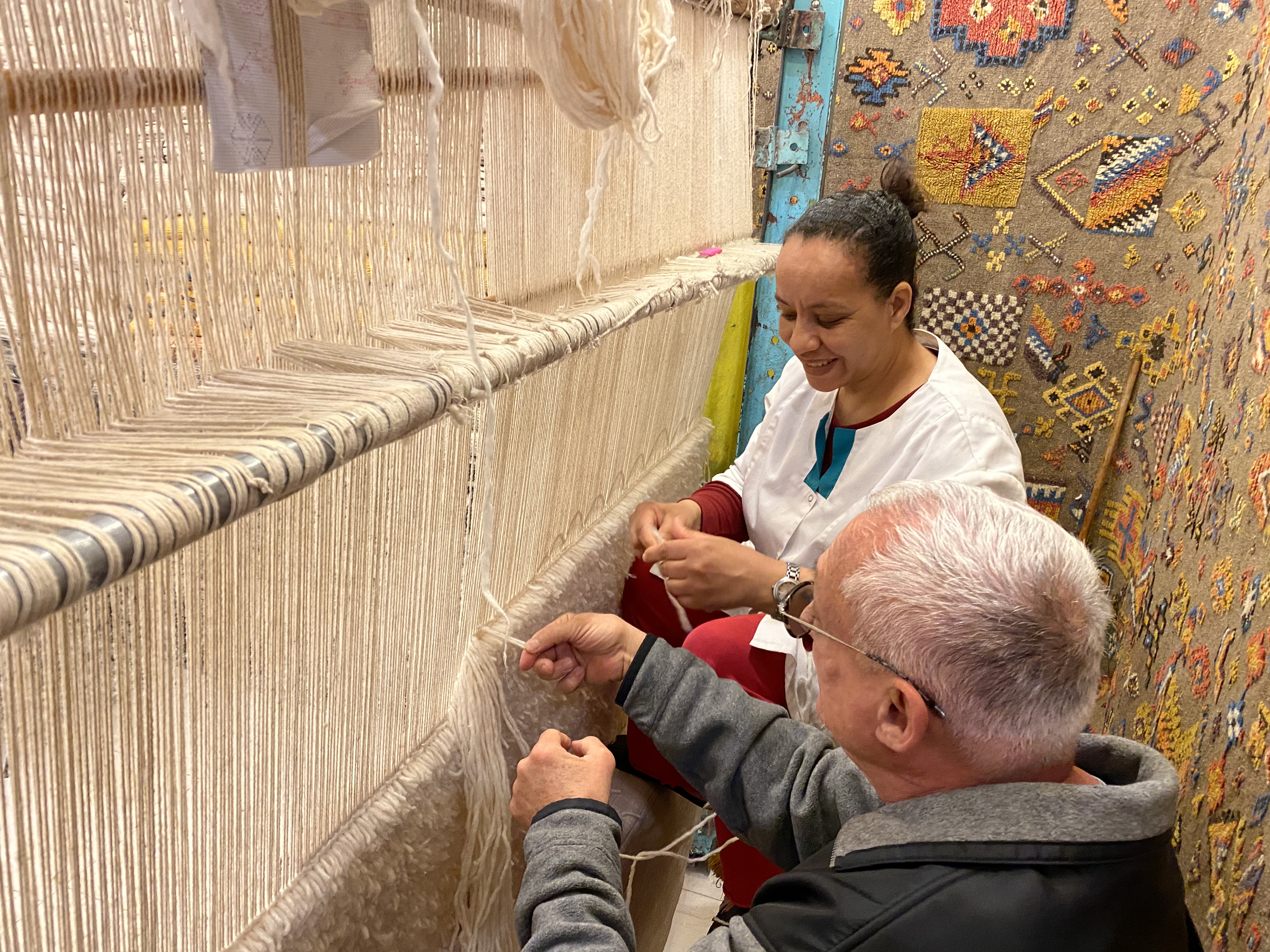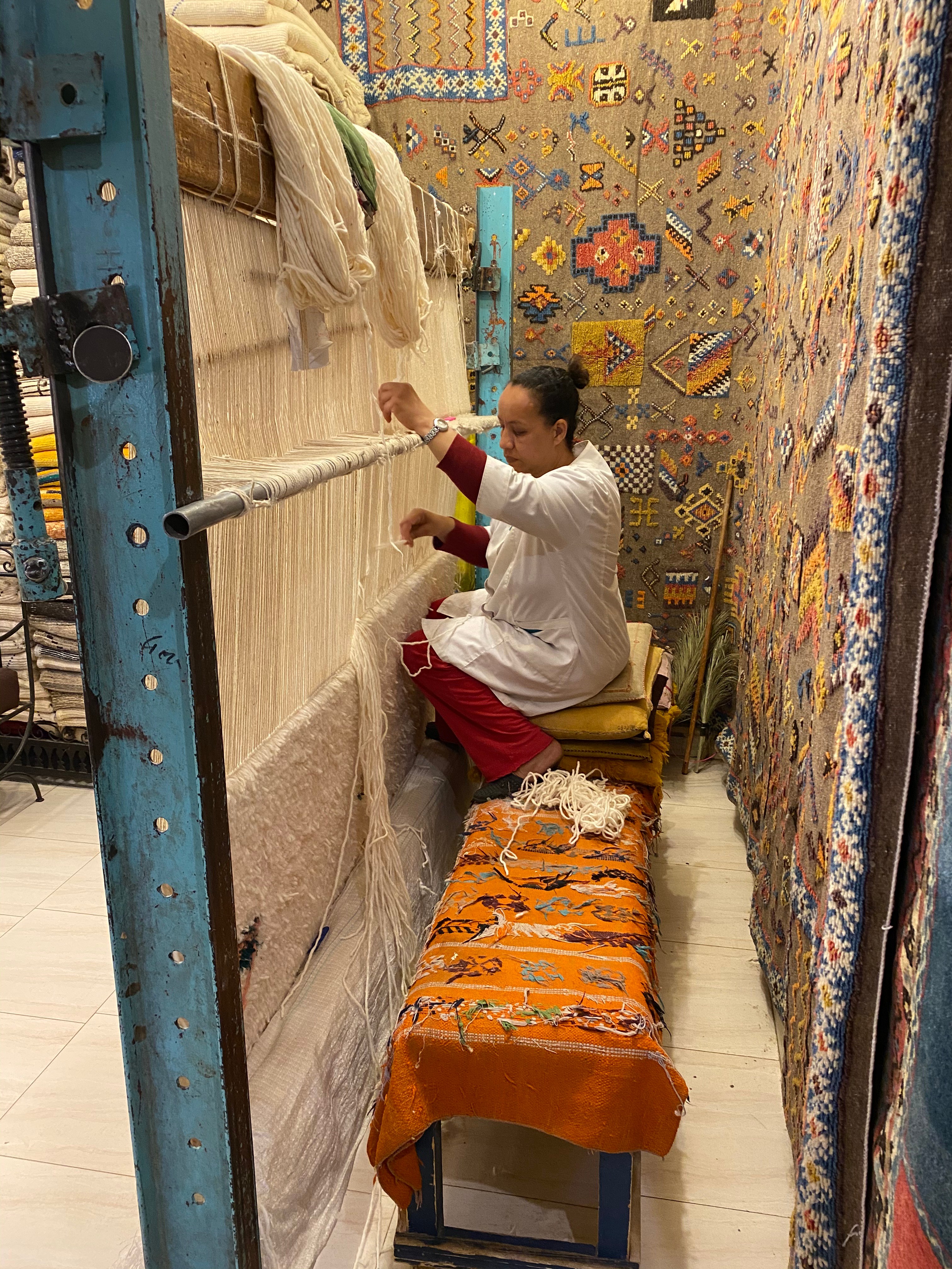 A smooth-talking Berber man in a long dark robe greeted us are we stepped into the second-story showroom. He welcomed us to what he described as a cooperative of women rug weavers.