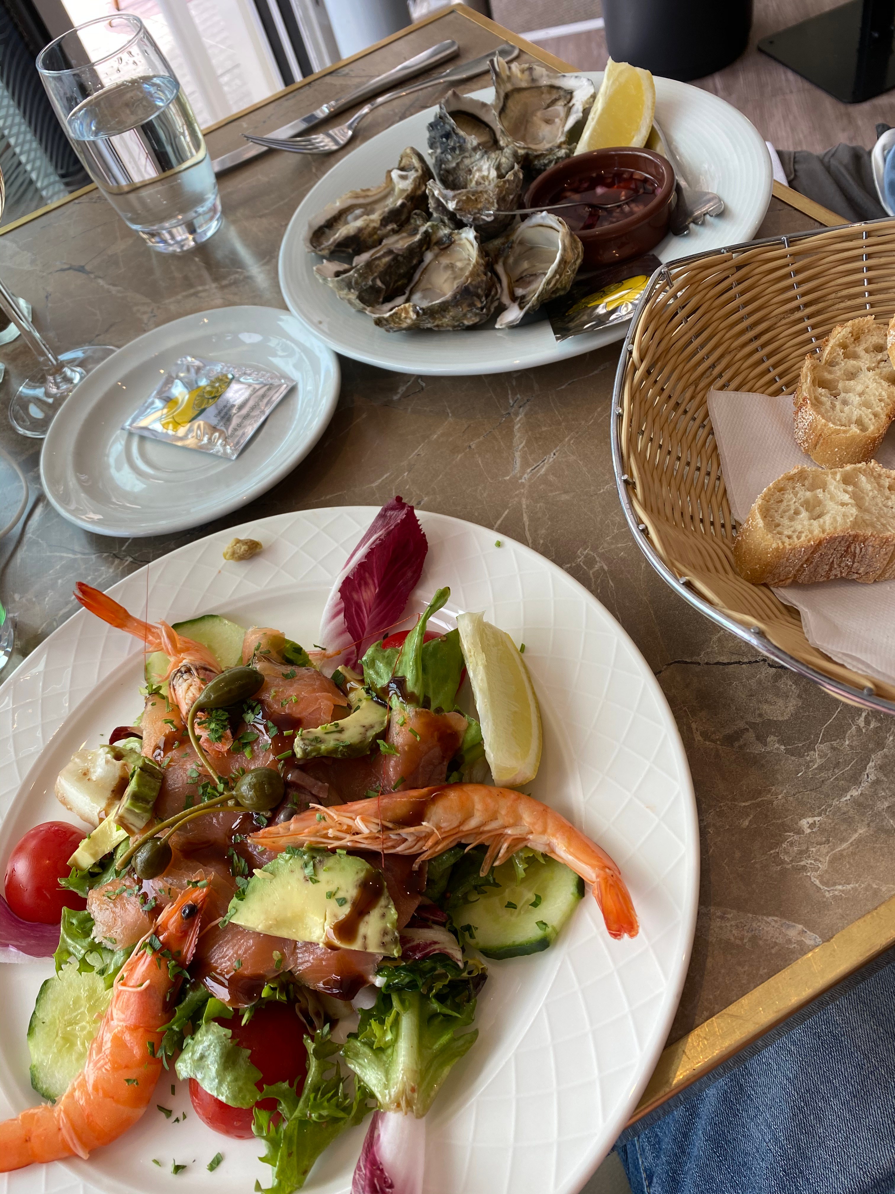 When we left Carcassonne at around 10 am, it was chilly and gray. In Port-Vendres, it was mostly sunny and about 10 degrees F warmer. It was a beautiful day to stroll around the harbor, and more importantly, have some lunch on the sunny terrace of a restaurant. This was our first meal out at a restaurant since the start of the lockdown. Quite the milestone! We found a pleasant local menu, which was very tasty. Probably the pleasure of being out and about again doubled the tastiness.