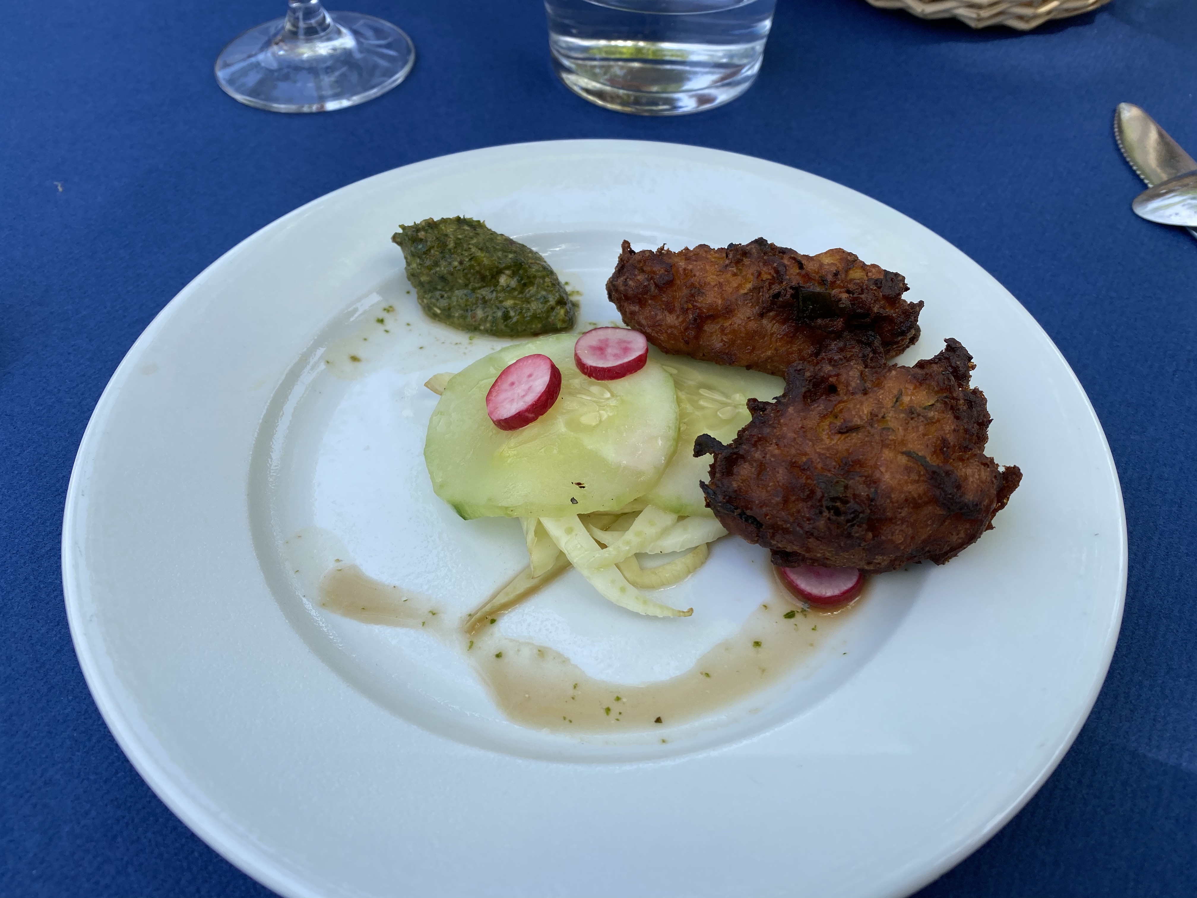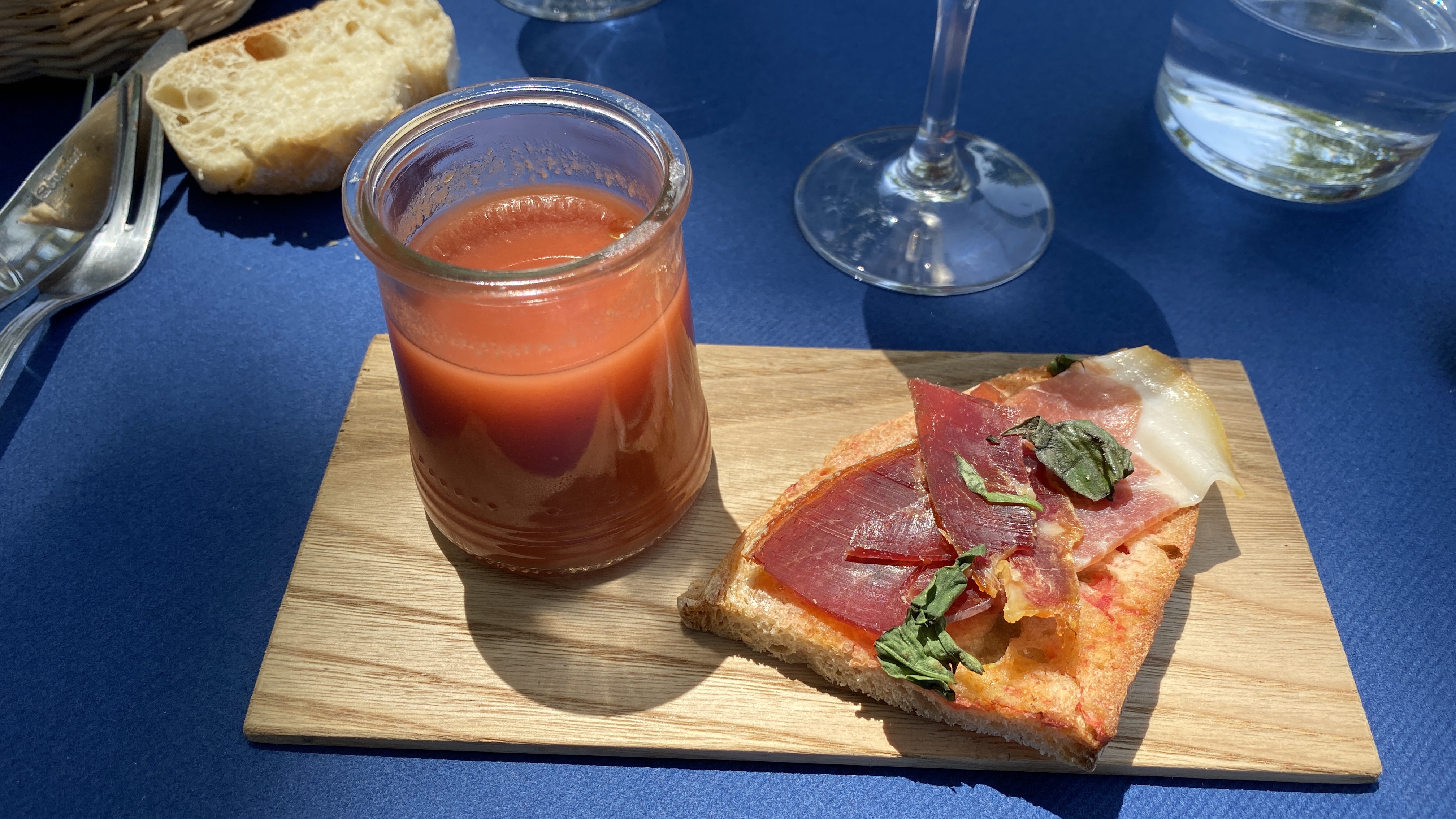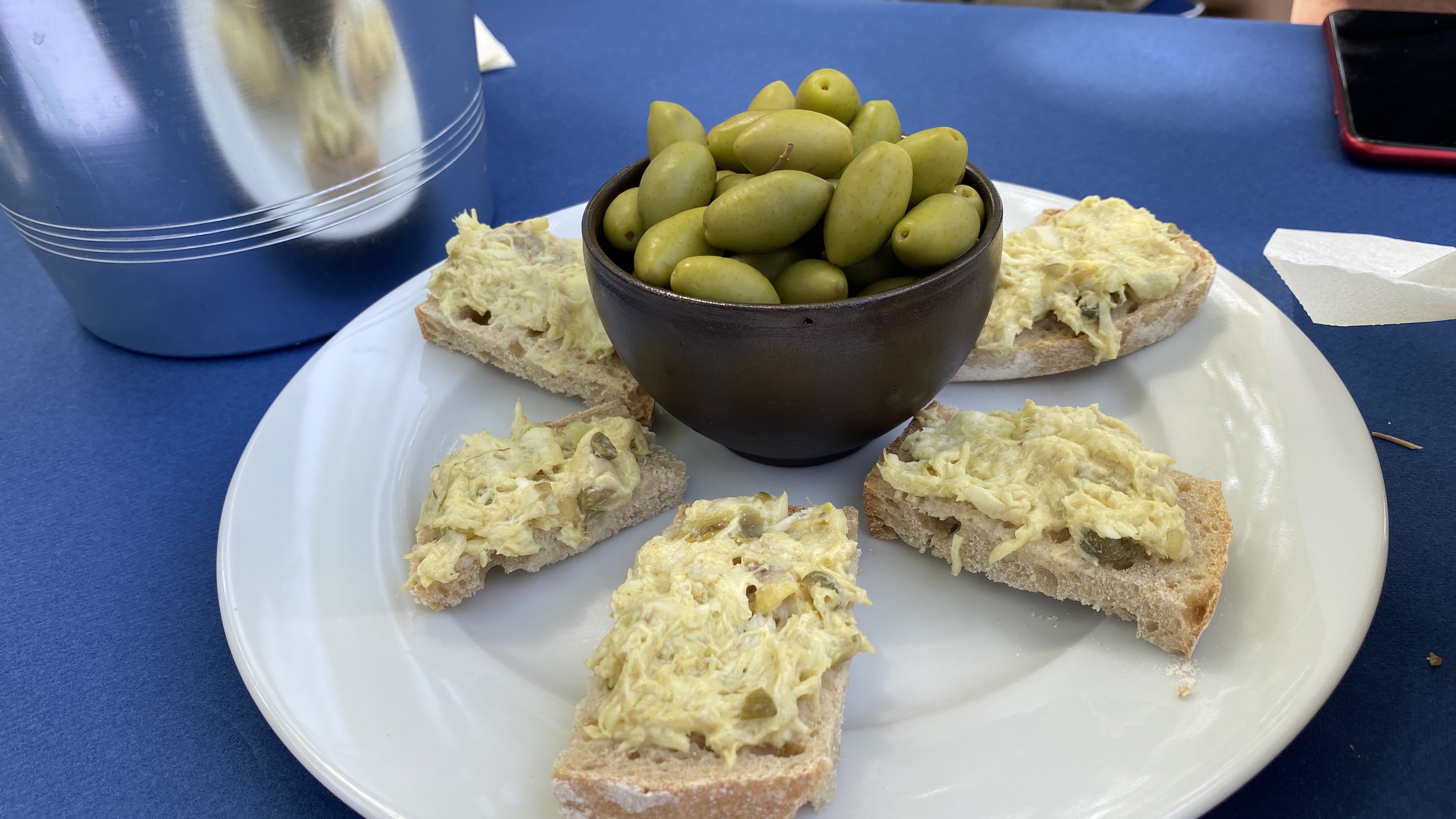 After all that introducing, with an overlay of cigale songs, the wine and tapas started arriving. Beautiful food and wine!