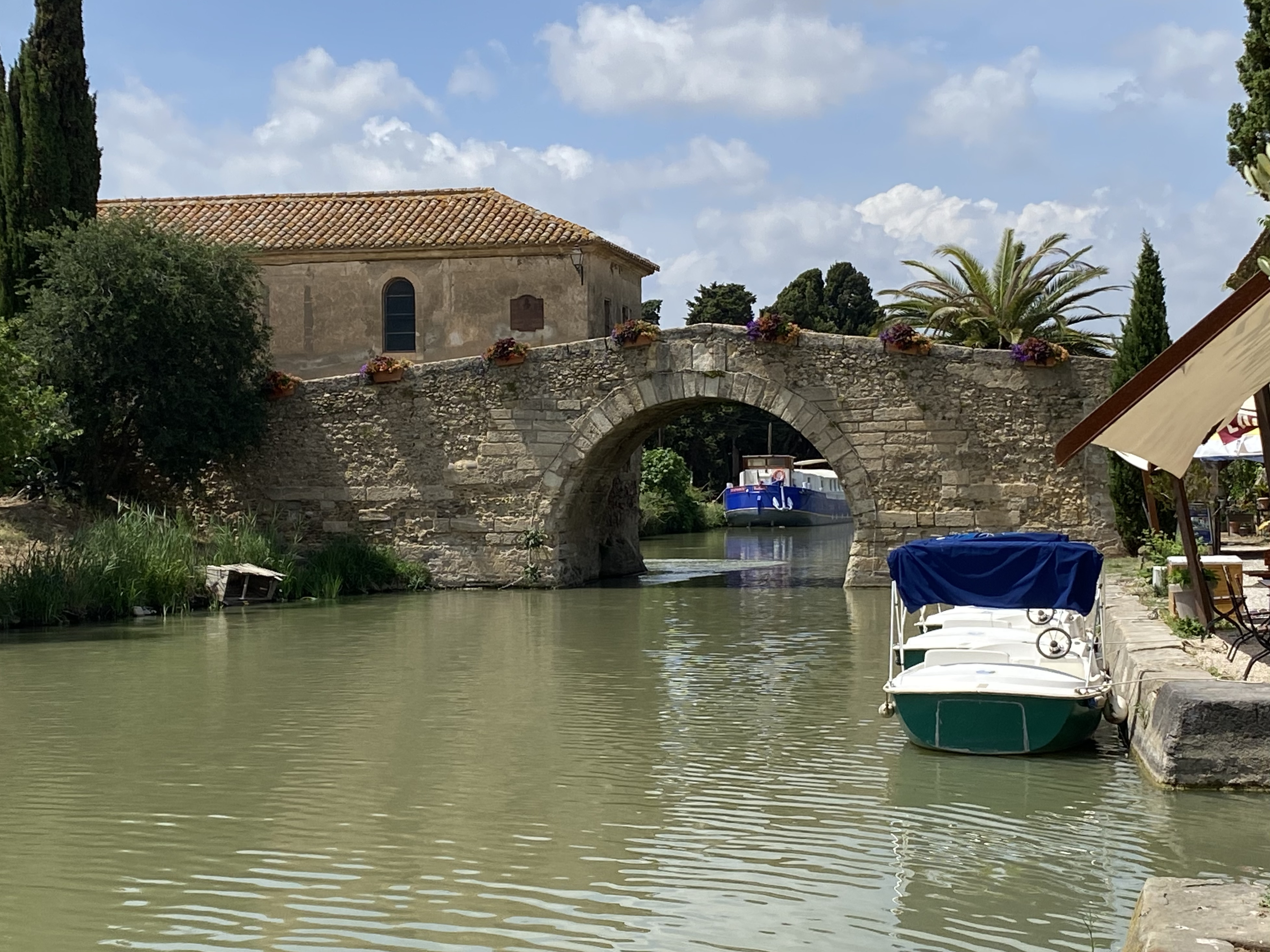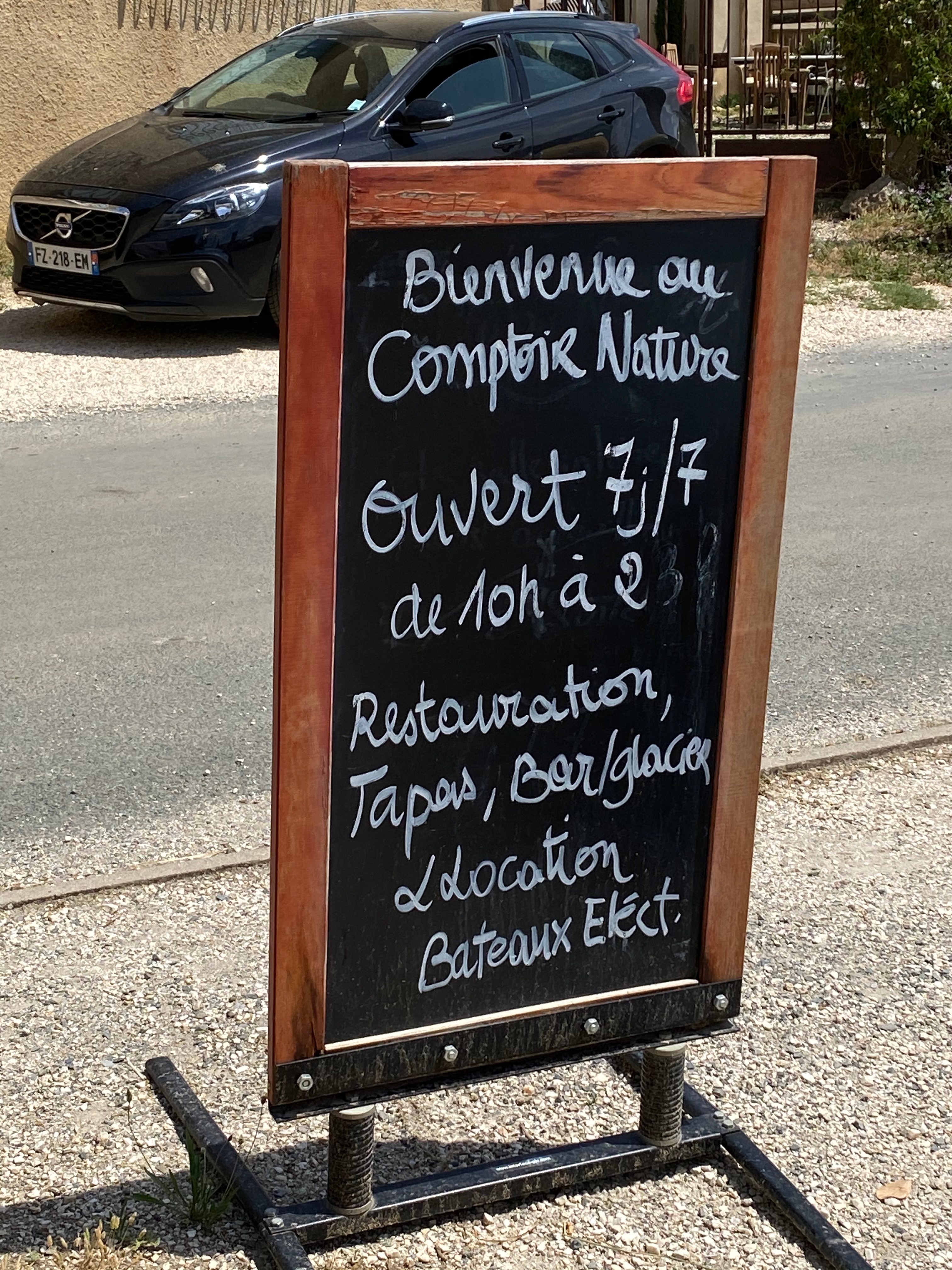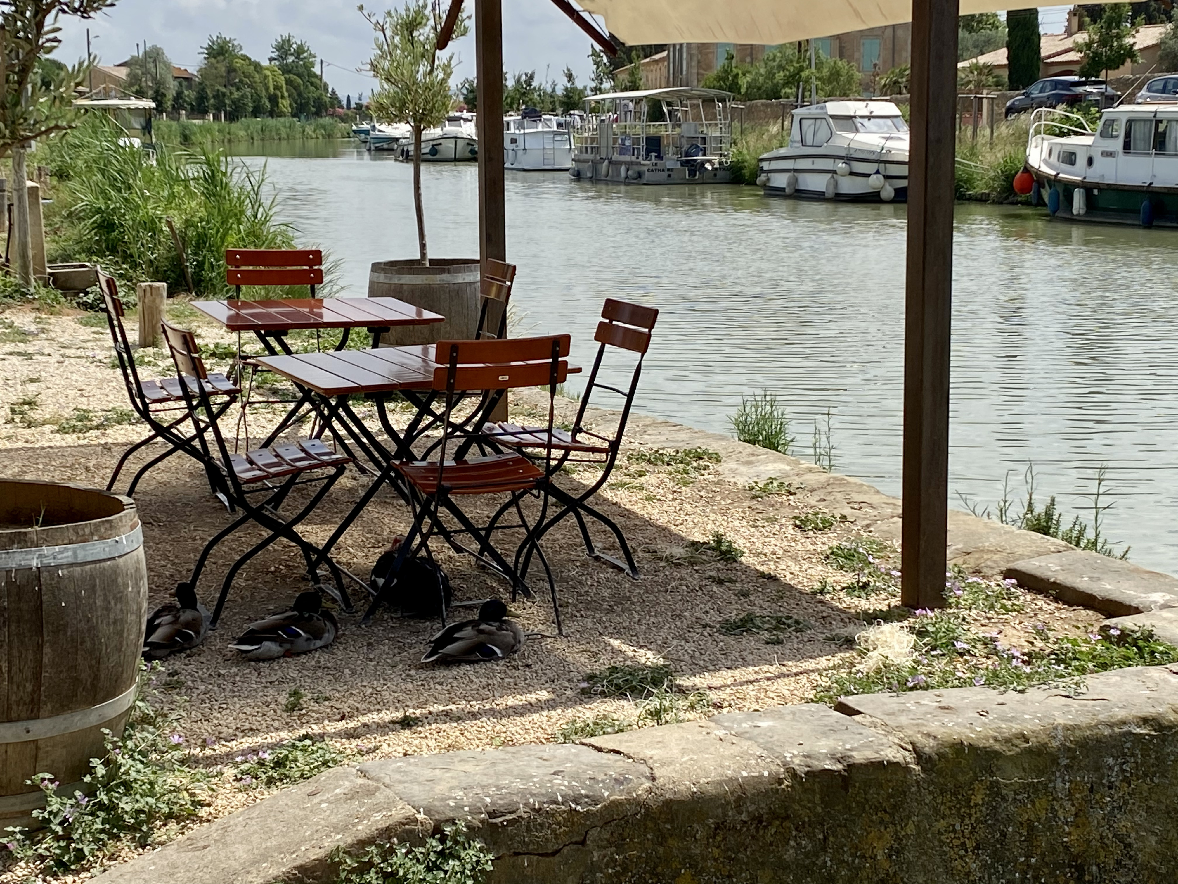 Our first outing was an alfresco lunch at Le Comptoir Nature with our friends from Quarante. Cathey and Ira knew about this casual restaurant next to the Canal du Midi, in the village of Le Somail. Without hesitation, we joined them, and Liz, Sharon and Nigel…