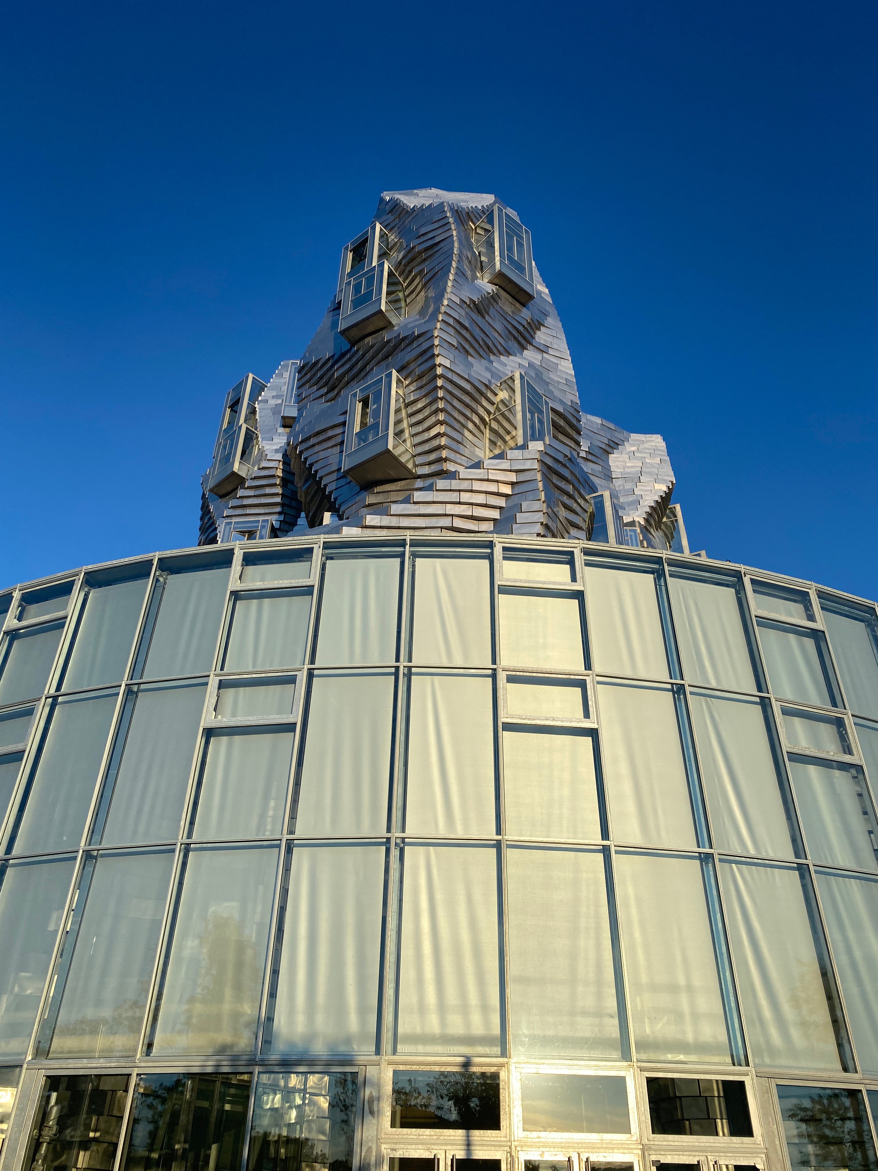 There’s a new landmark in Arles: the just-opened LUMA Foundation Arts Resource Center, designed by Frank Gehry. The founder of the LUMA Foundation, Maja Hoffman, aims to create a world-class inter-disciplinary arts community, and she sees this extroverted building as part of putting LUMA — and Arles — on the contemporary culture map. In much the same way the Gehry-designed Guggenheim Museum in Bilbao, Spain, transformed that city. There’s plenty of controversy bubbling around this hyper-modern building in traditional Provençal Arles. It’s an odd beast: like a polished transformer (as in, The Transformers) posing on top of an old glass drum. Still, it is shiny, provocative and surprisingly not too out-of-scale for the town.