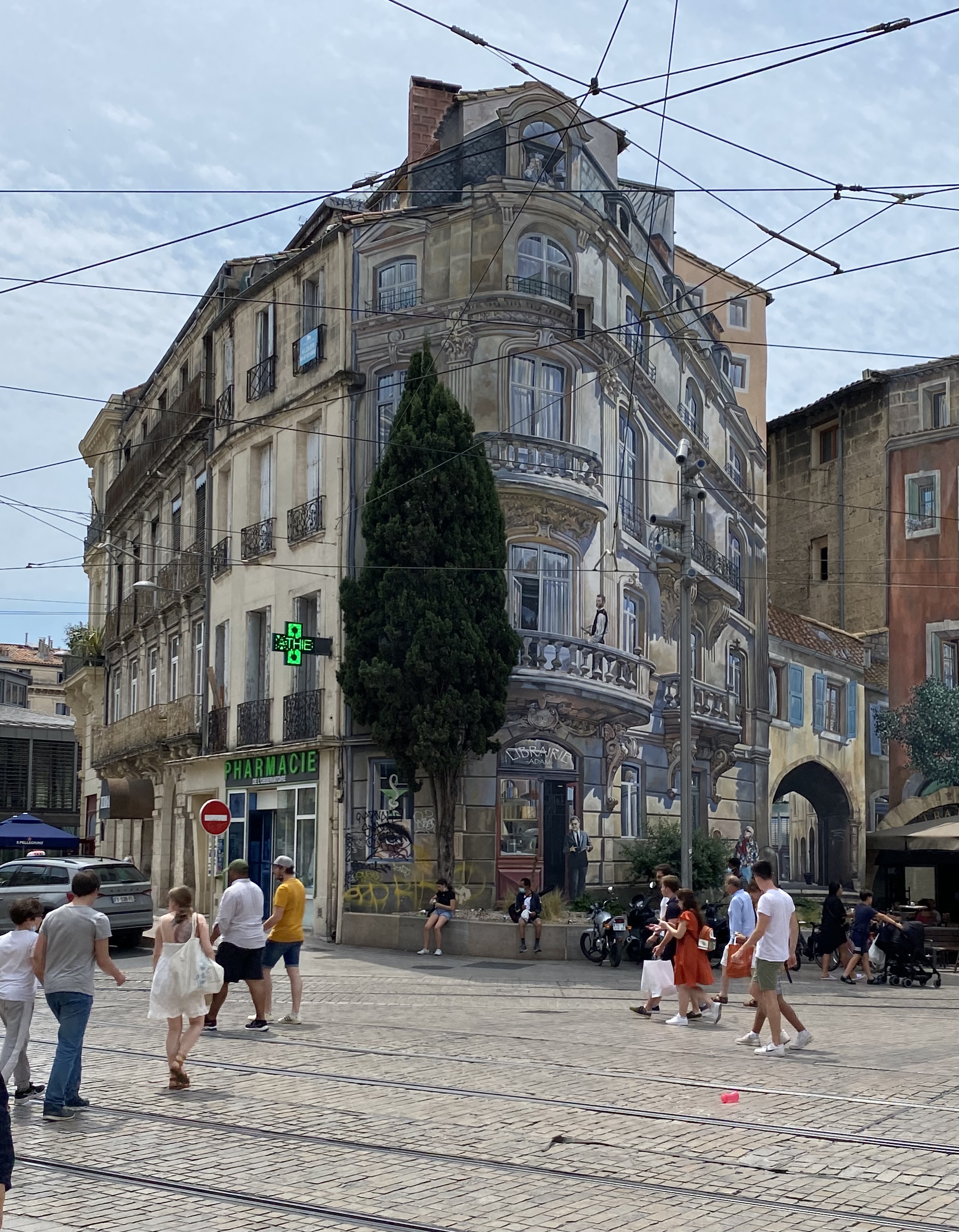 Jef had grown up in Montpellier, and had worked in the city for many years. Before heading back to Carcassonne, he wanted to show us around his old neighborhood, the historic center known as the Écusson (from a word for a heraldic shield, because of the shape of the plan of the district). The history of Montpellier as a town goes back to the 10th century. While many medieval and renaissance buildings still exist in the Écusson, 19th-century Hausmannian buildings give a feeling of a sunny Paris here in the south of France.