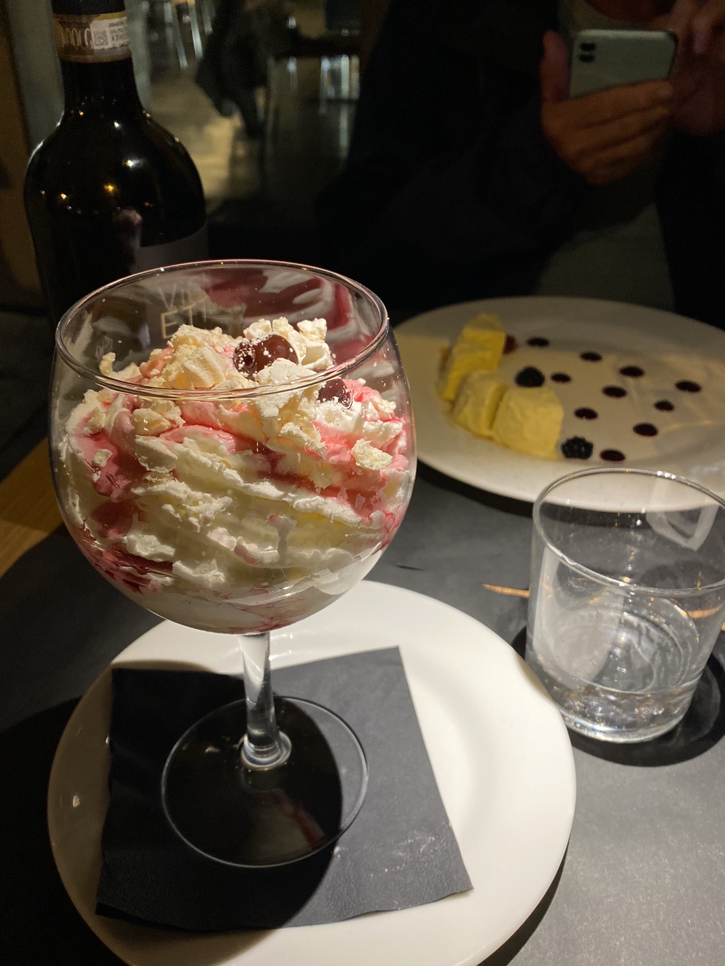 Amarone (black cherry), meringue, vanilla gelato, whipped cream