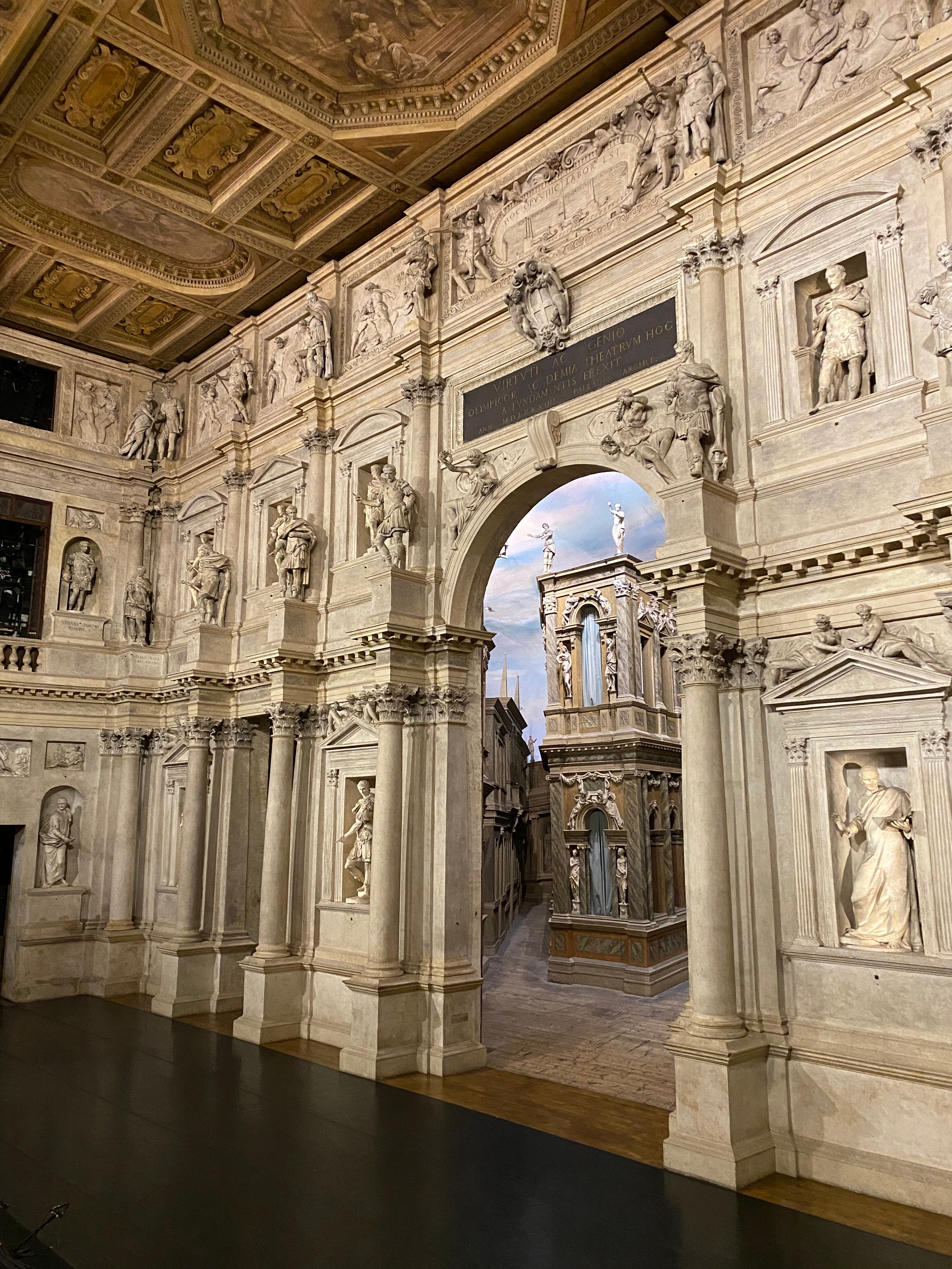 It is one of the artistic wonders of Vicenza. During the Renaissance, in fact, a theatre was not a building in itself, as it would later become, but a temporary arrangement of an outside space or an existing building; in Vicenza, these spaces were courtyards of palaces or the hall of the Palazzo della Ragione.
