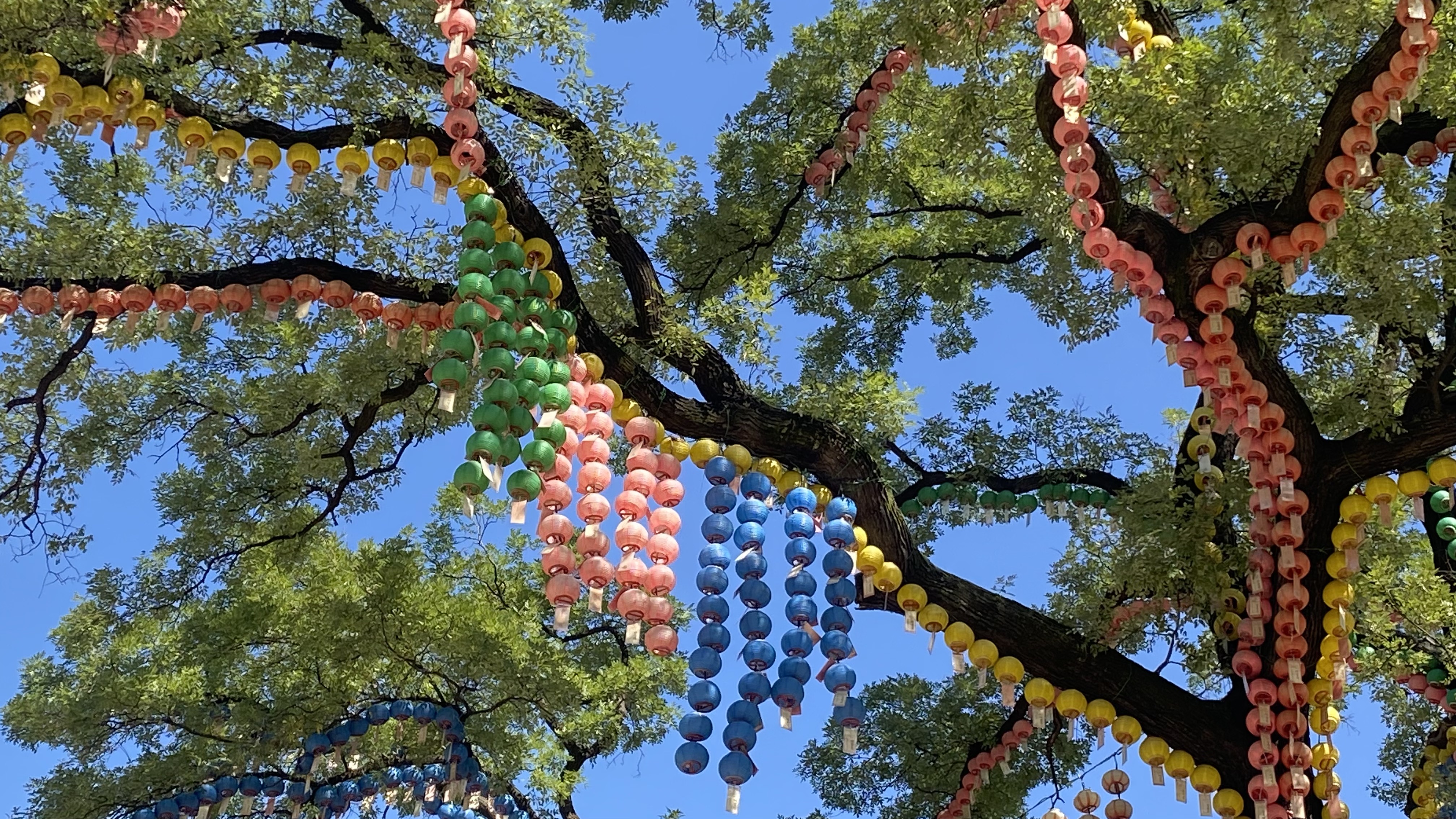 The grand canopy tree in front of the Daeungjeon captivated us. We loved the sprinkling of lanterns amid the branches. This is the Chinese Scholar tree. It’s purportedly over 450 years old. People often plant this type of tree near Buddhist temples and palaces. They believe the tree can convert negative energy into positive energy and happiness. That’s the reason why it’s also planted near the Daeungjeon.※