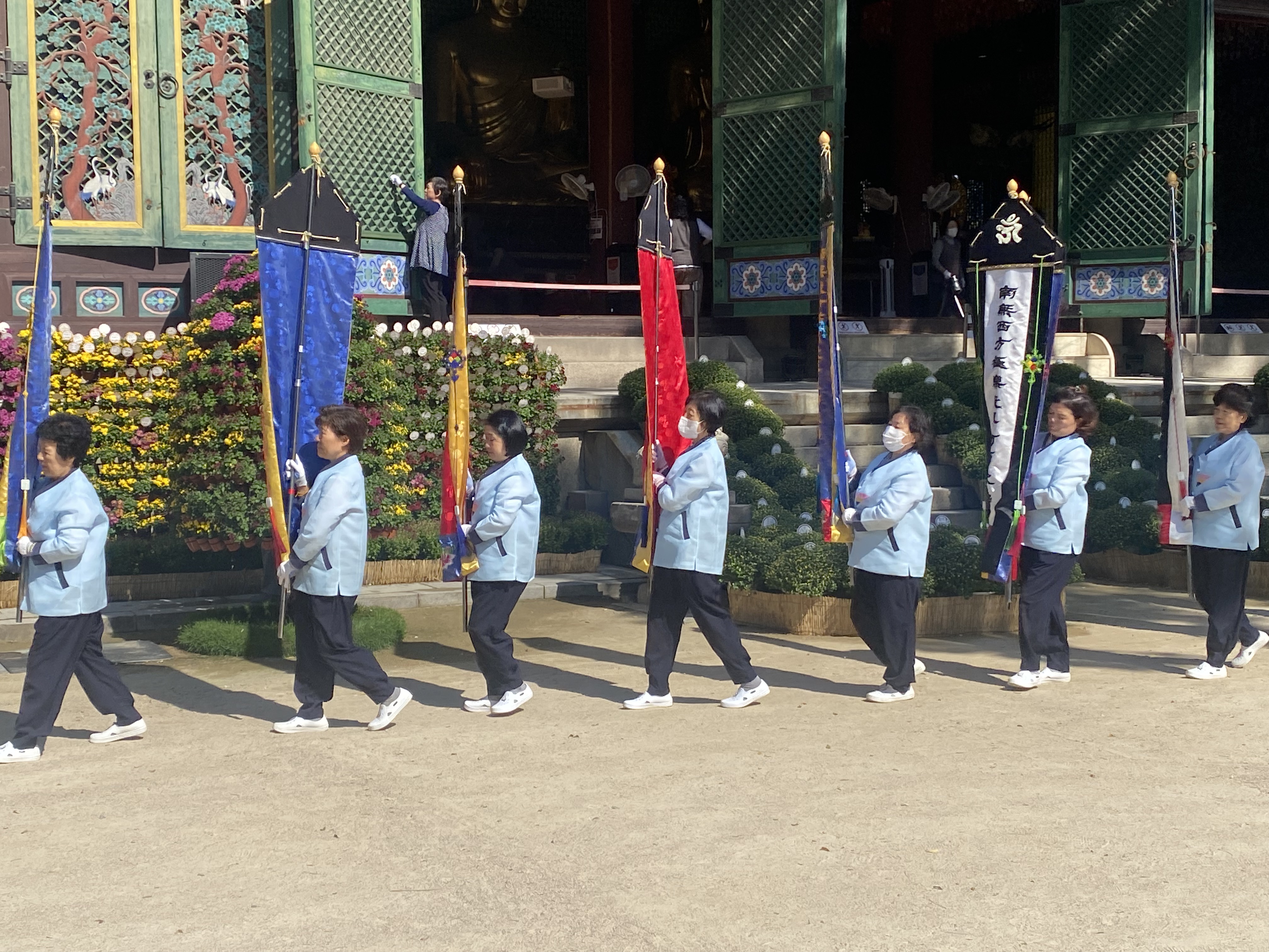 After about 20 minutes of ritual movements and drumming, many of the participants formed a processional across the temple compound and into the Geuknakjeon Paradise Hall. We could hear further drumming and voices, which continued beyond when we continued on our route beyond the temple complex.