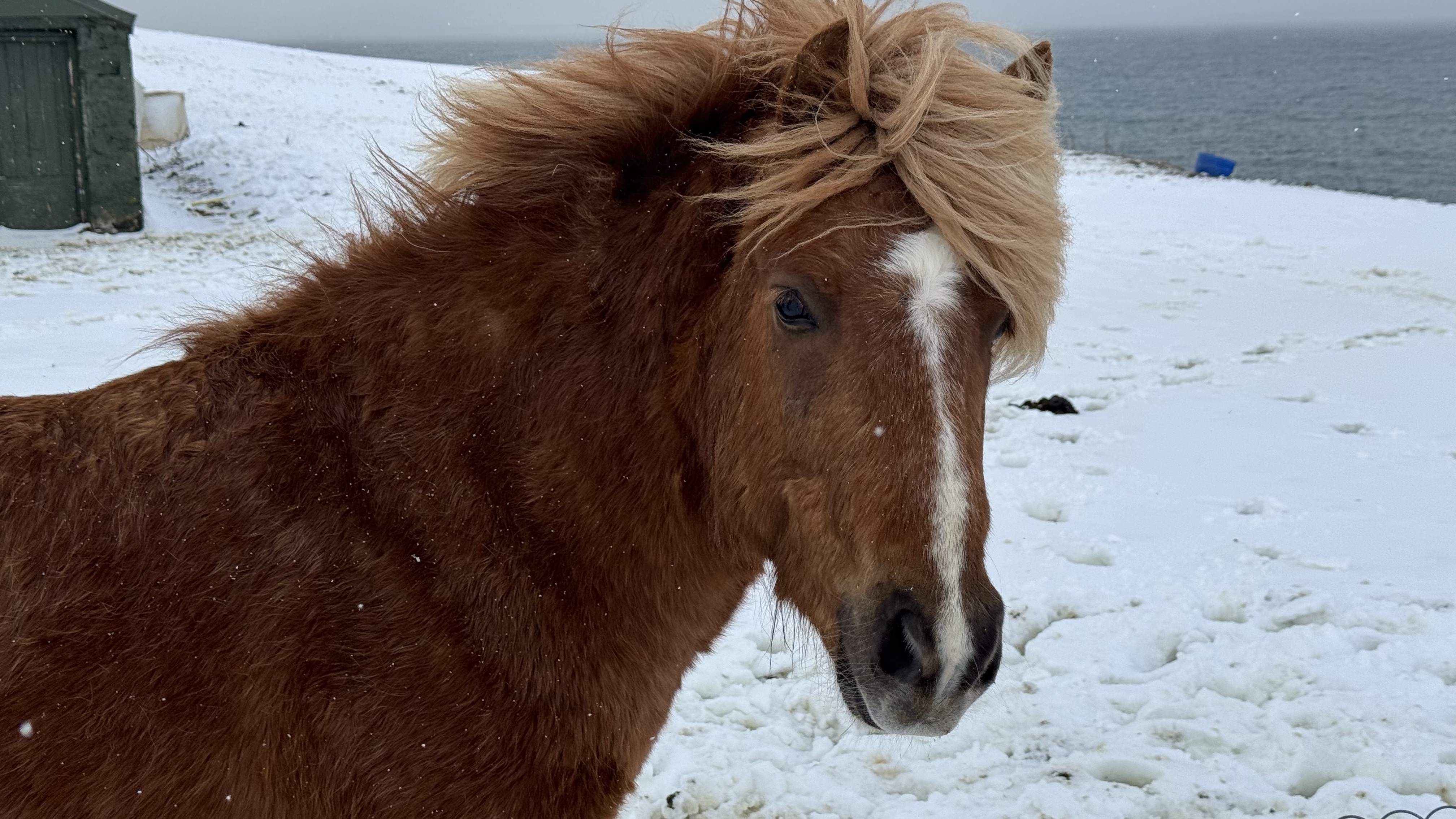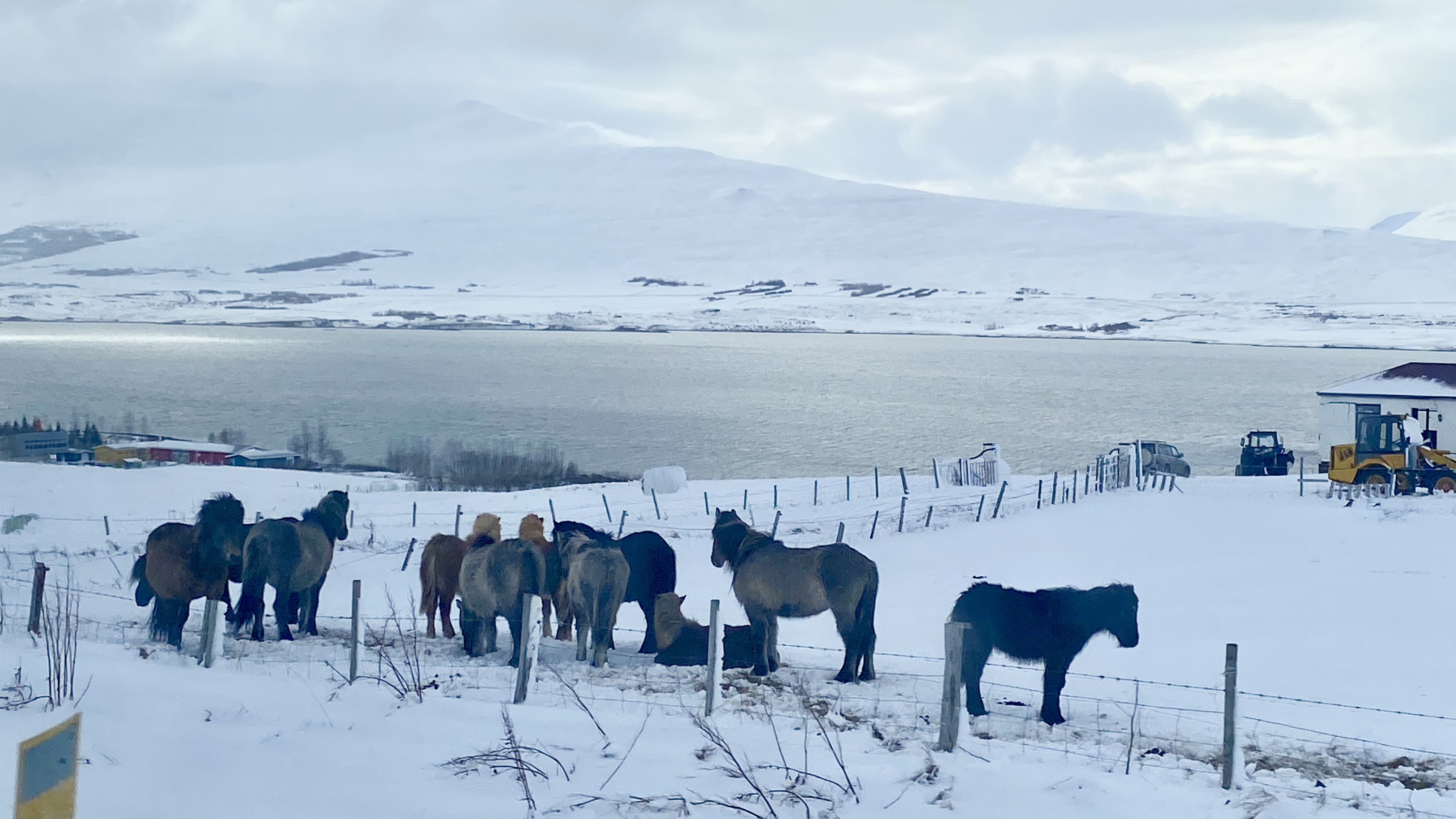 We stopped for a stroll in a village of Grenivík. Some of those charming Icelandic horses seemed glad to have a little human diversion in their snowy day.