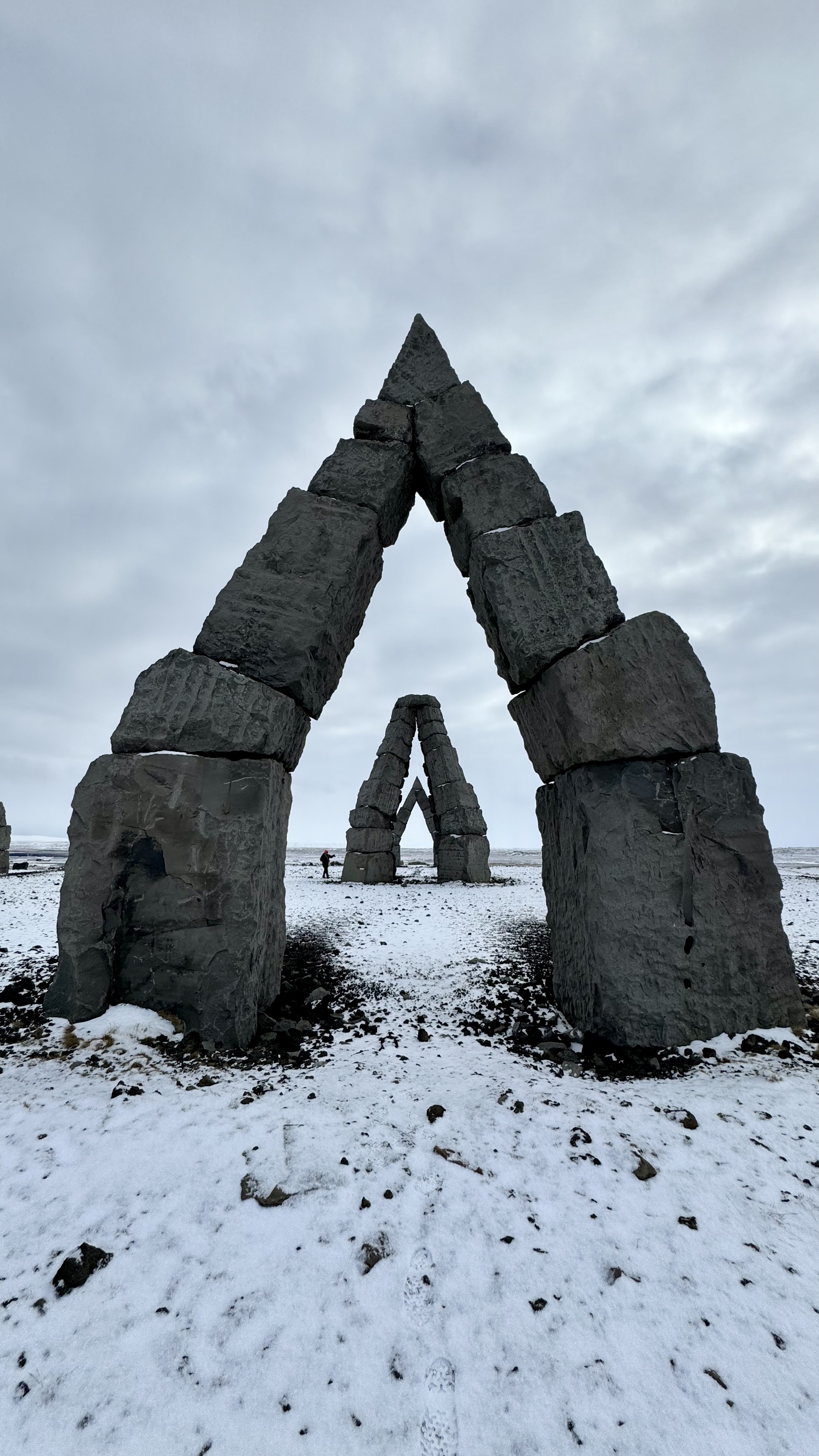 On the day of our visit, a cold wind howled through the arches. This is not at all uncommon since the Arctic Henge sits on a peninsula just about as far north as you can get in Iceland; it almost touches the Arctic Circle.