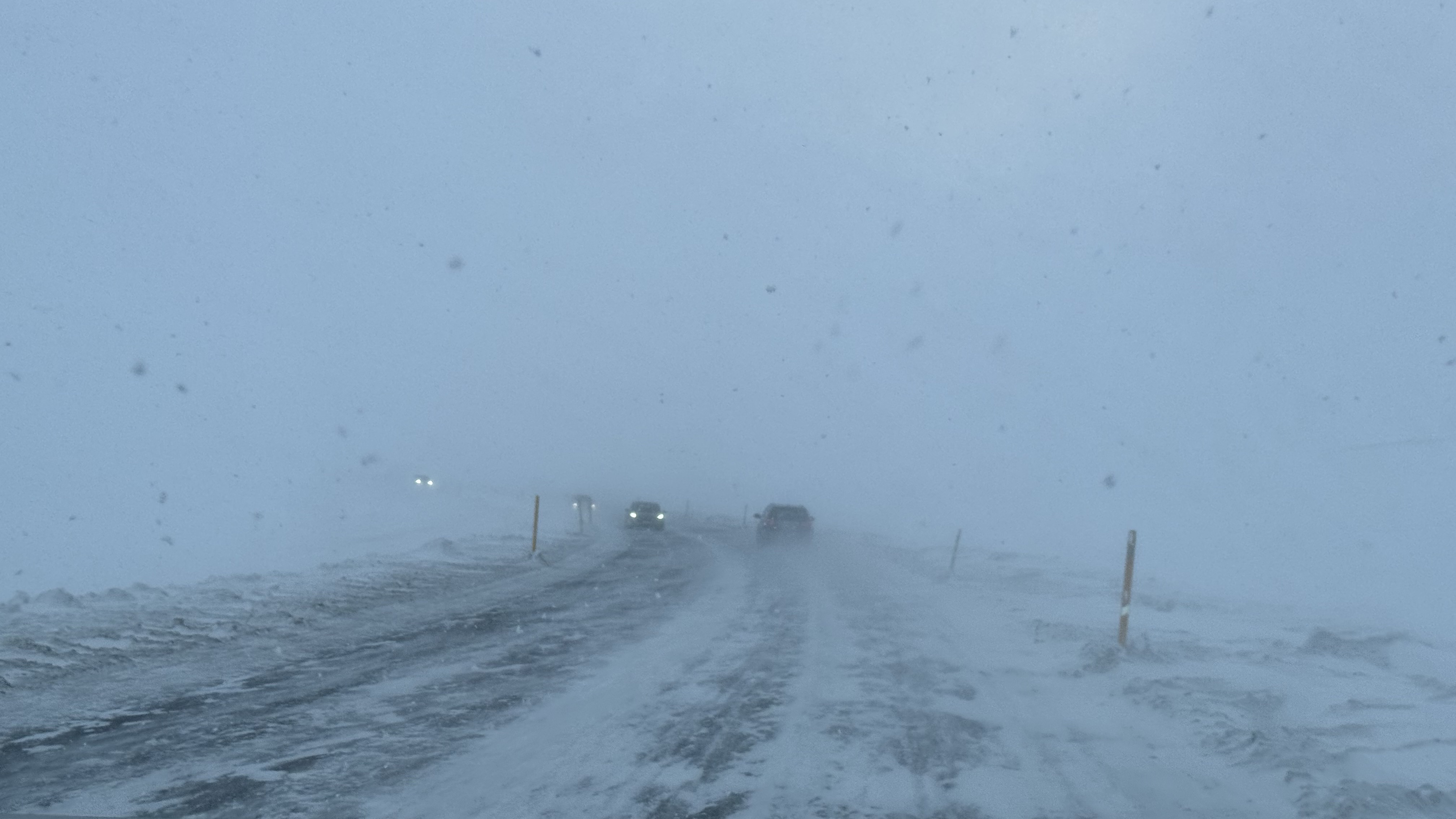 We drove through snow squalls, blowing snow like horizontal blizzards…
