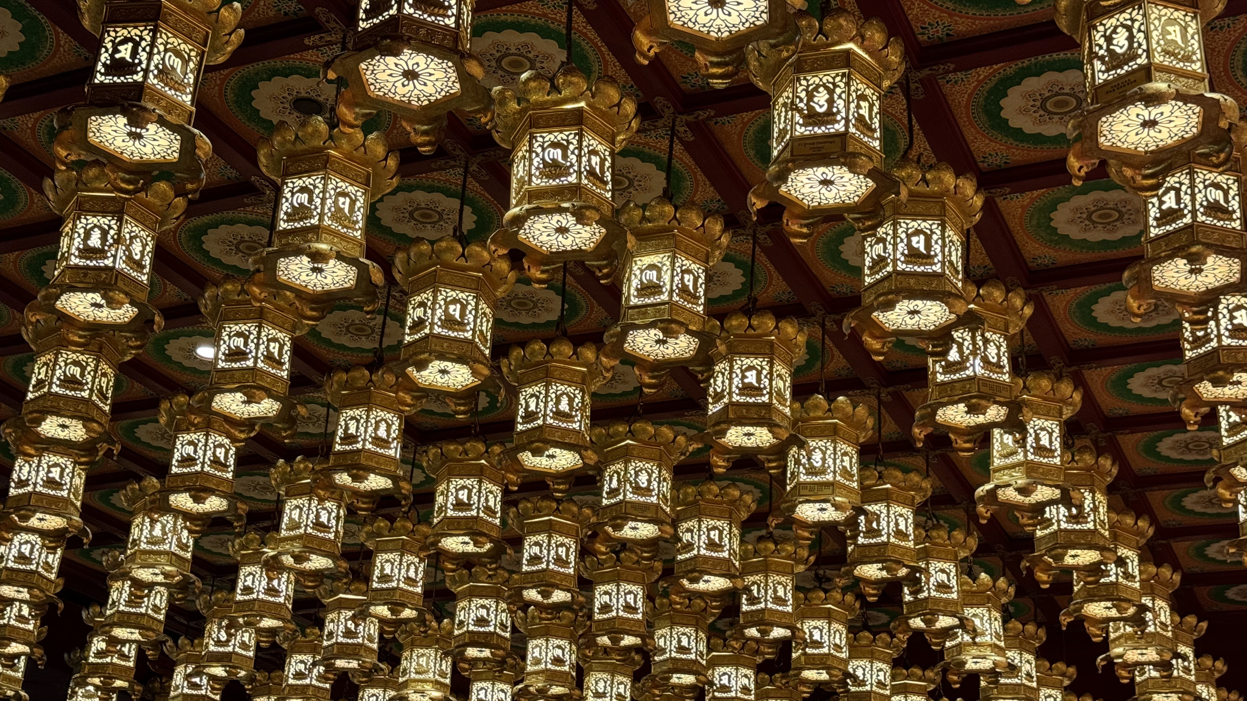What we found was a busy welcoming temple. Alas, we aren’t at all knowledgeable about the ceremonies and sculptures and artworks we saw. But we were impressed by the fact that we, along with quite a few other people, were free to wander through the main spaces of the temple while a serious ceremony was being performed. This is an alive place. It is full of shimmering beauty.