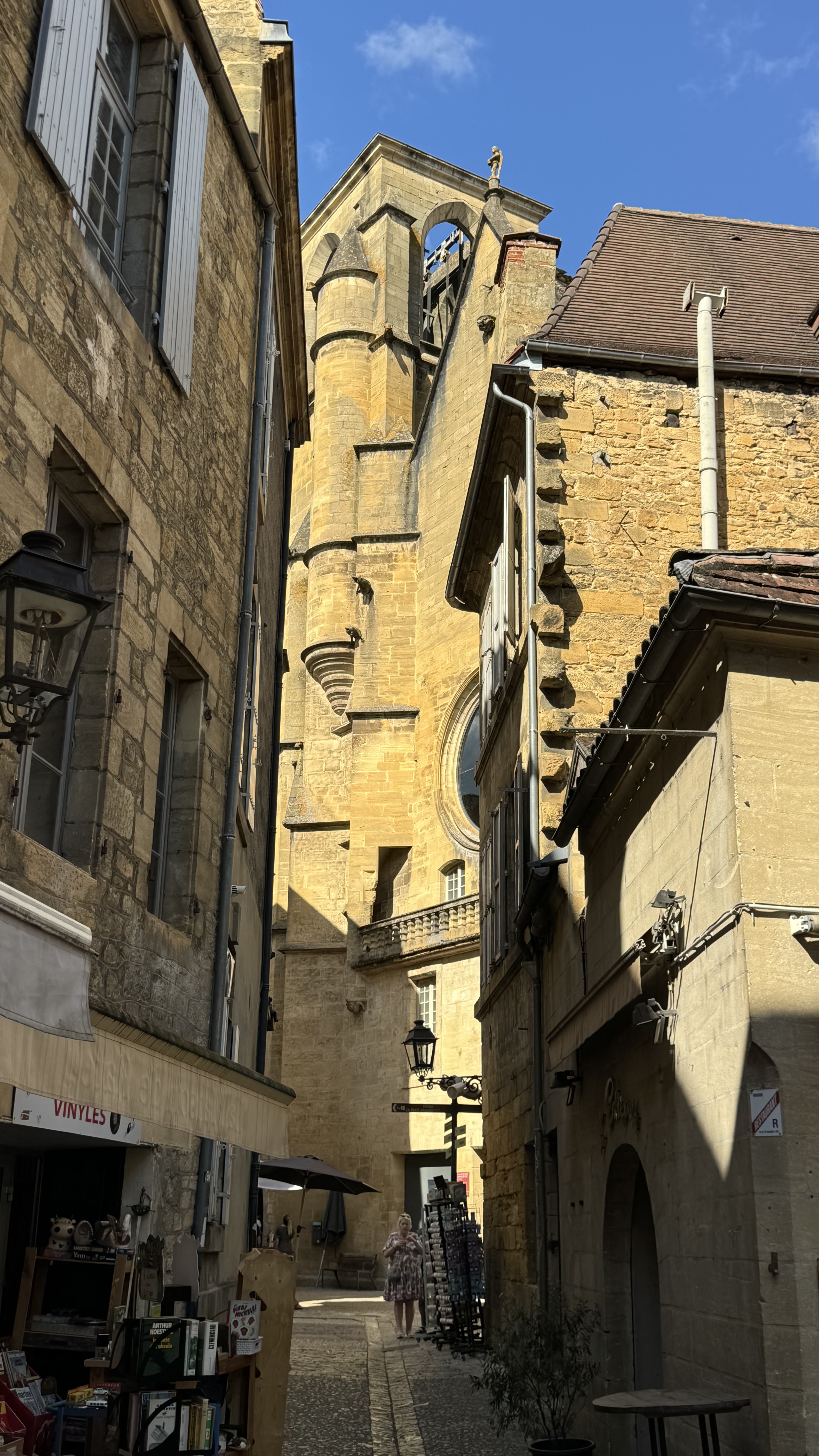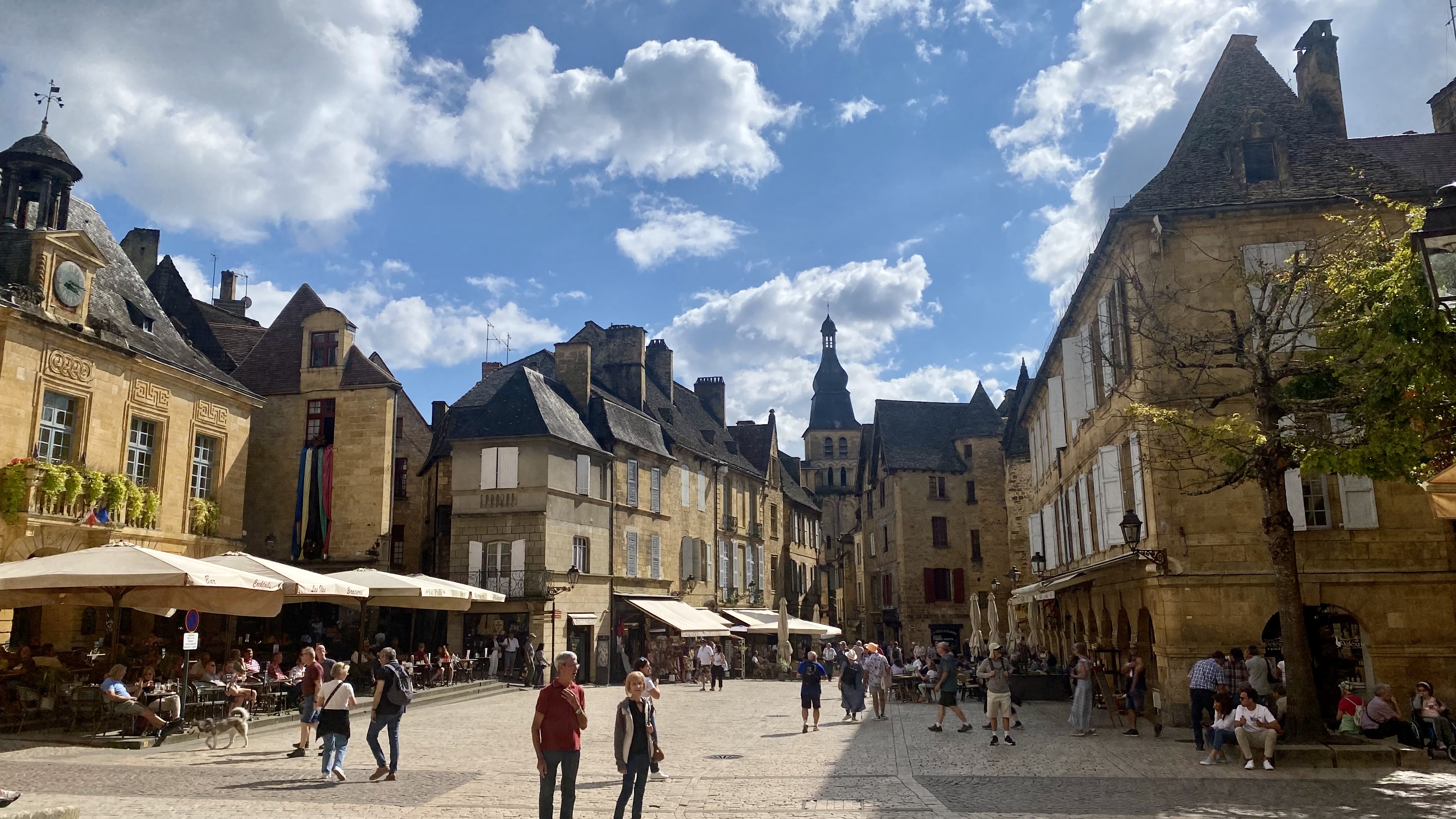 We wondered if Sarlat would still entrance after all these years and after our time living in France. It is indeed still a lovely picturesque town with some interesting history. At the same time, quite a few people from around the world have discovered Sarlat. Of course, this latest visit was not in chilly late winter; it was in September, which is peak retiree travel time. So, as they say in France, il y a du monde — literally, the world, meaning lots and lots of people. It seemed there were enough restaurant and café tables along every street to feed a cruise ship. We wondered where all the hotels were to supply so many people.