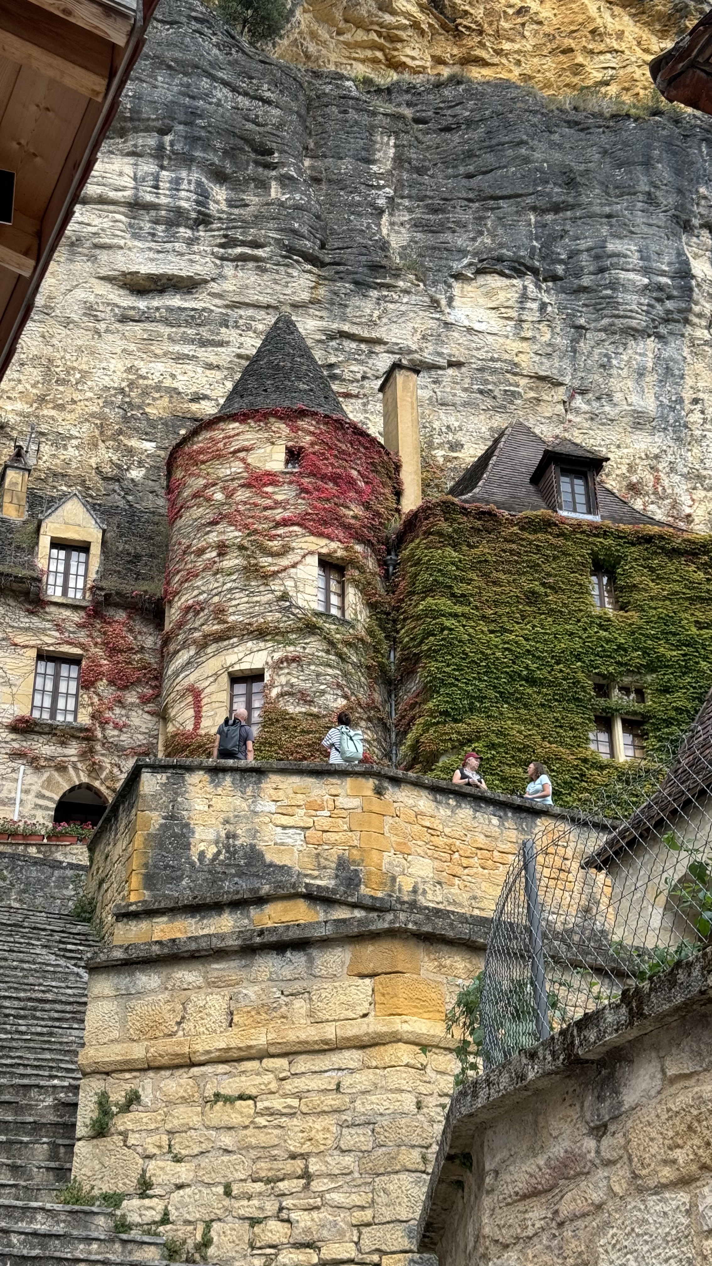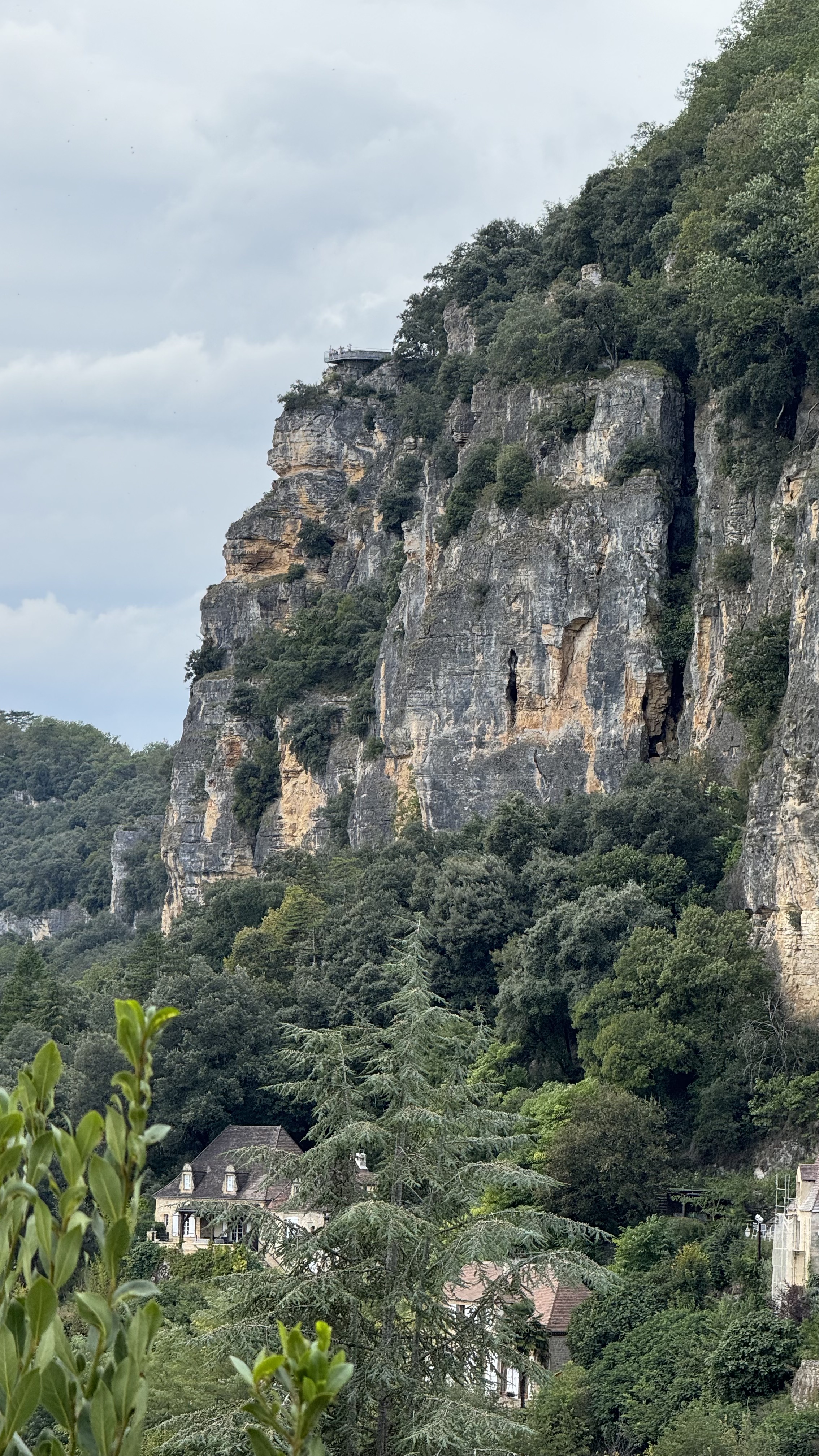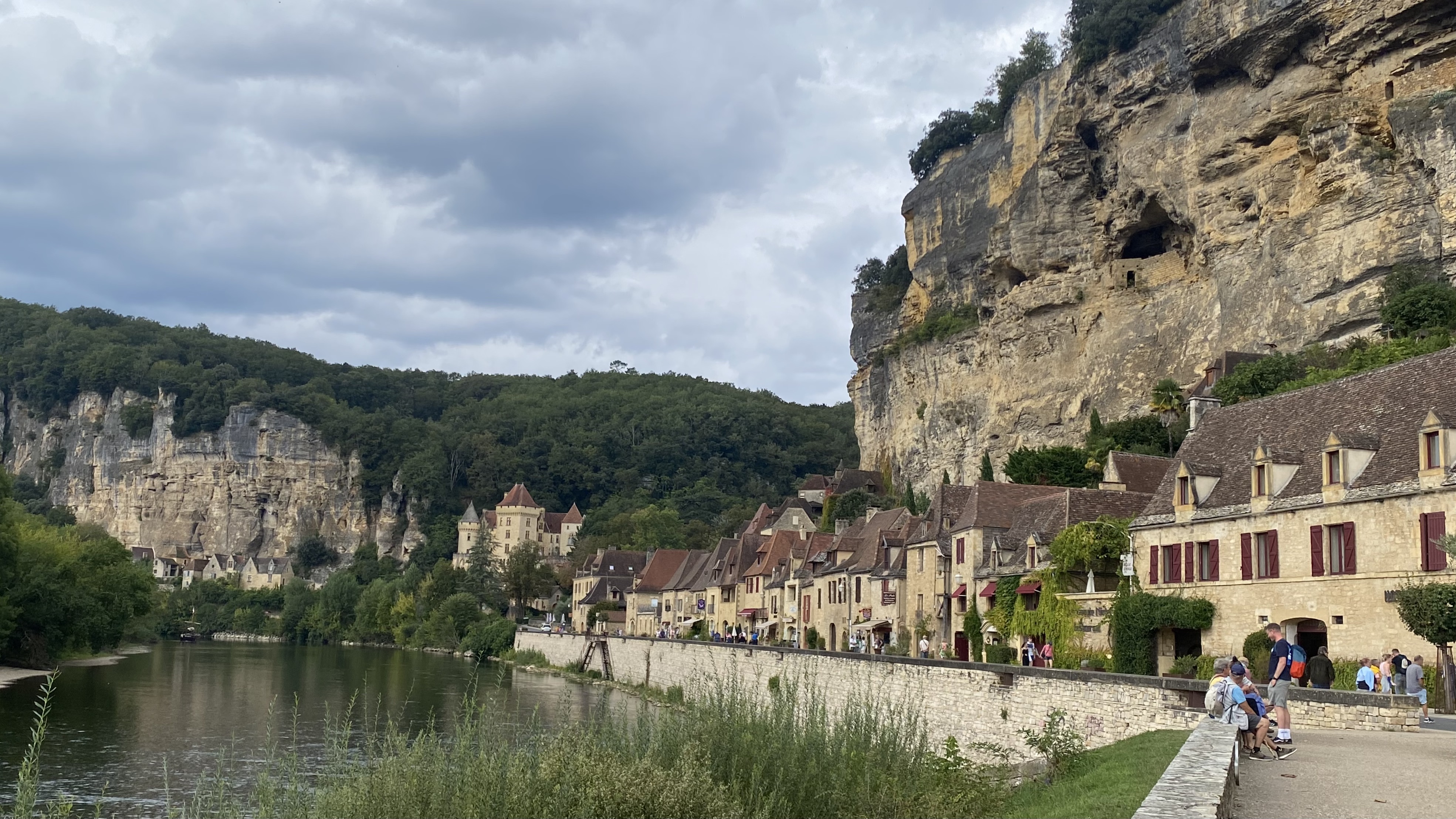 But that cliff is also impressive because since prehistoric times people made their homes in caves high above the river. These are troglodytic settlements. Why go to the effort to build houses when the cliff provides covered and secure shelter. In the Middle Ages, inhabitants enclosed the open cave mouths with stone walls for more protection from the elements.