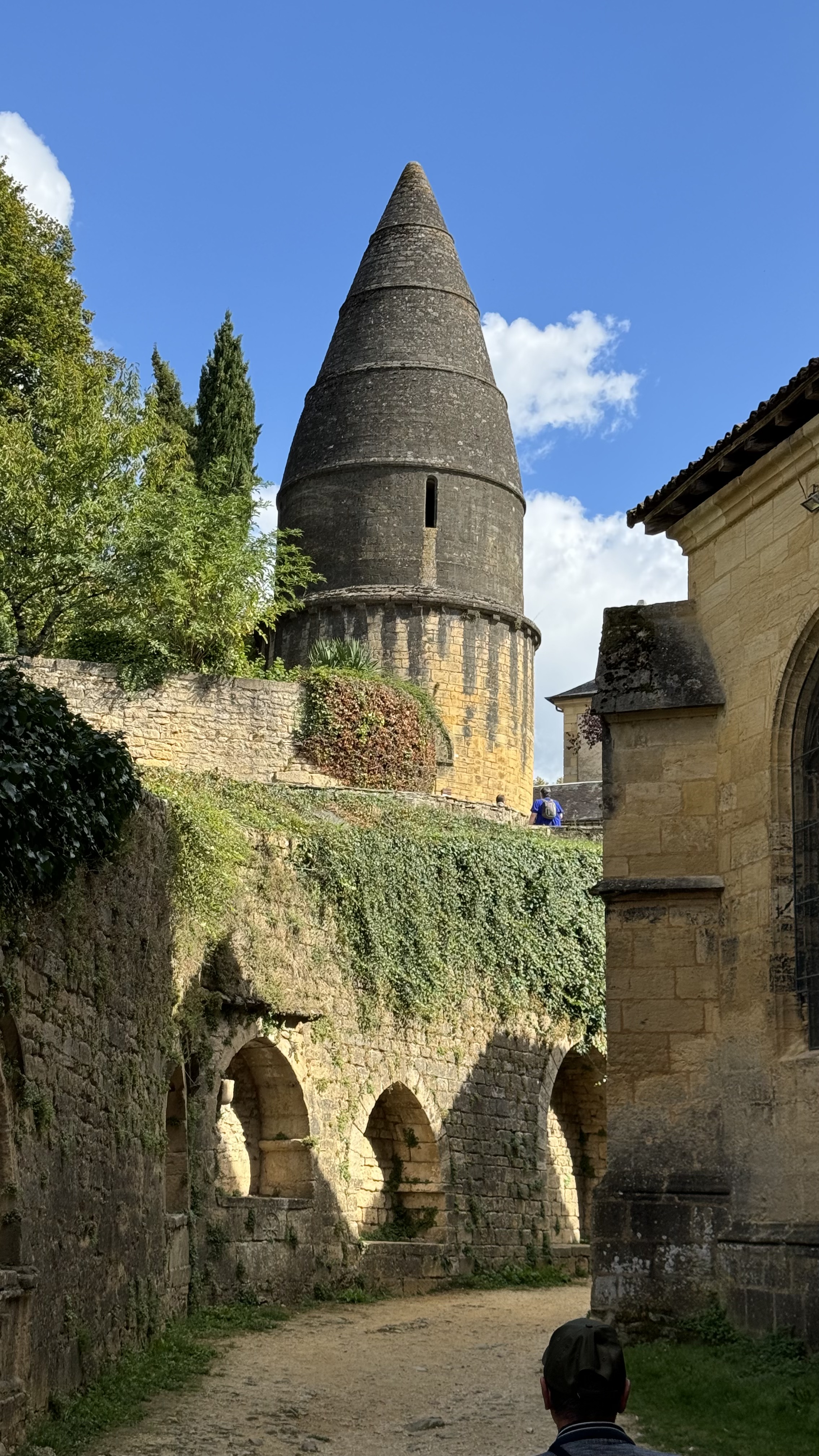 This structure is known as the Lanterne des Morts, or the Lantern of the Dead. It may have been a place of prayer for the deceased. Candles may have been lit in the roof apertures, to announce the deaths and as symbols of the souls on their journey to heaven. The niches in the wall below were burial places for noble families. The conic shape may have been inspired by what Crusaders saw in the Levant in this period. But, actually, no one knows exactly what was the function of this tower. ※