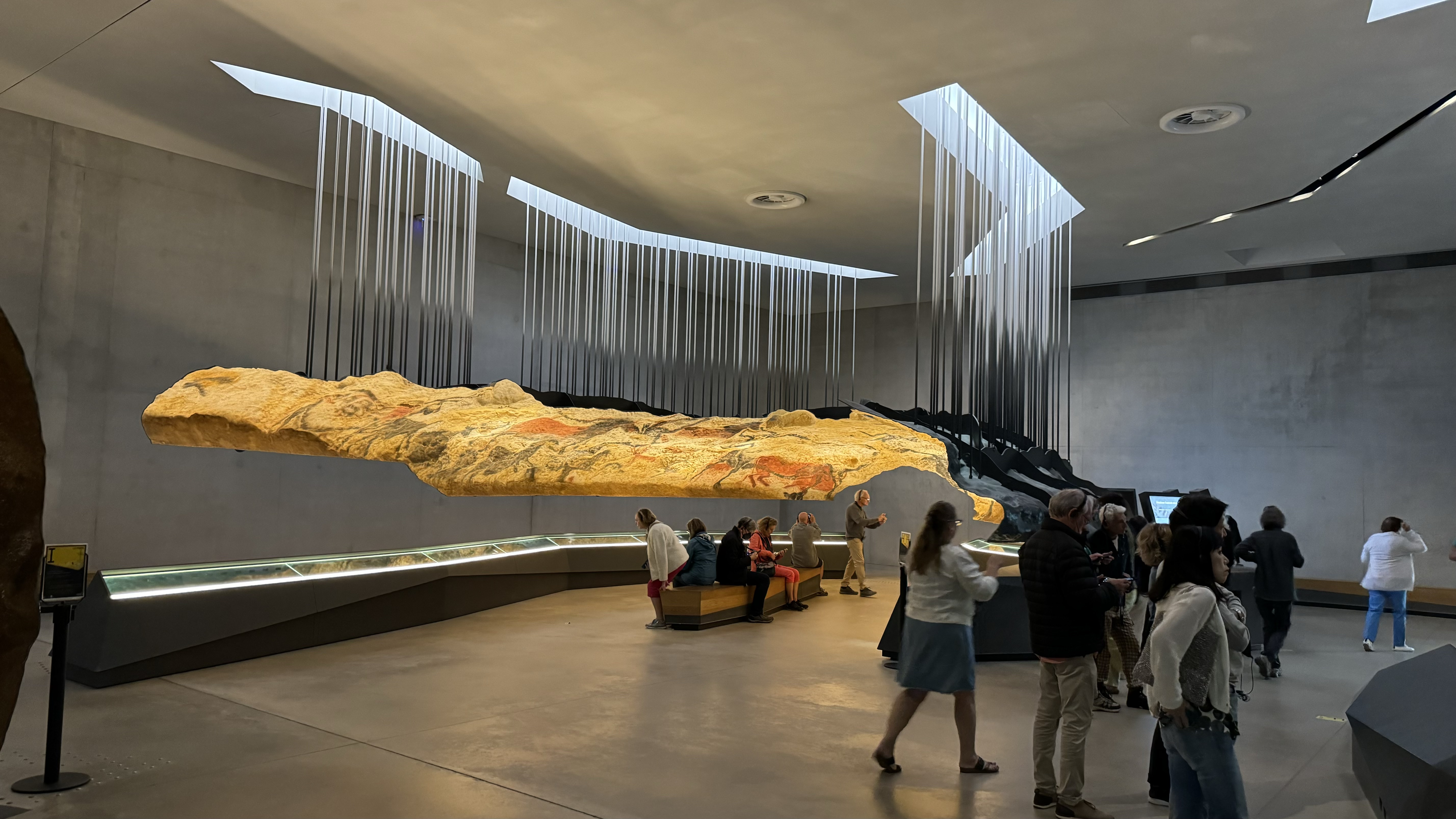 We visited Lascaux IV — the third precise copy of the original. You may think that seeing a copy would be a bit cheesy, a bit Disneyesque. But for us, even with the awareness that this is a modern construction, the experience was powerful. The archeologists and artisans and technologists have reproduced the contours of the real cave with intense precision, thanks for computer-integrated light scans. They have carefully recreated the surface materials of different stones. And rendered the drawings of animals and symbols with the same pigments used over 15,000 years ago in the real cave.
