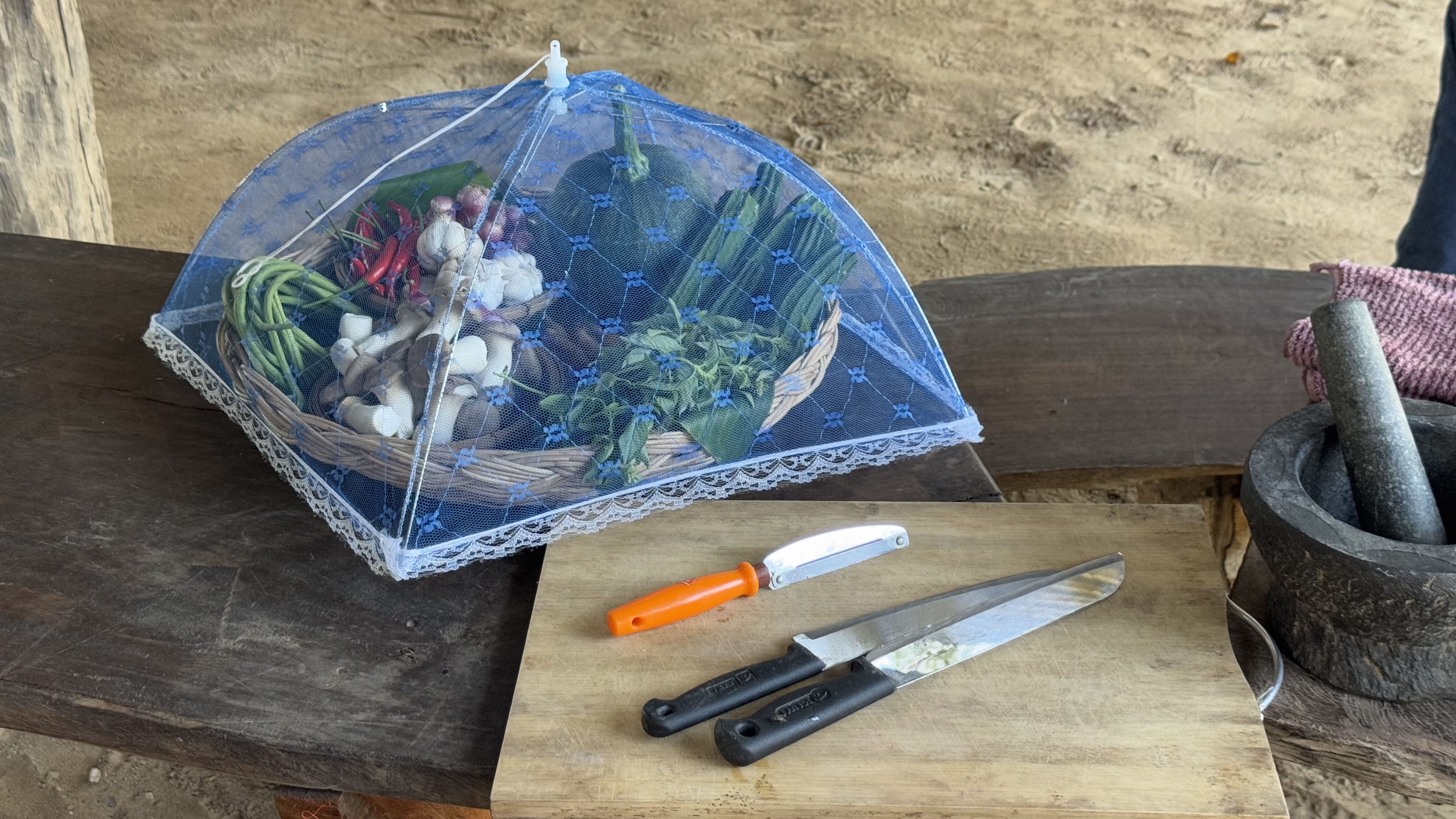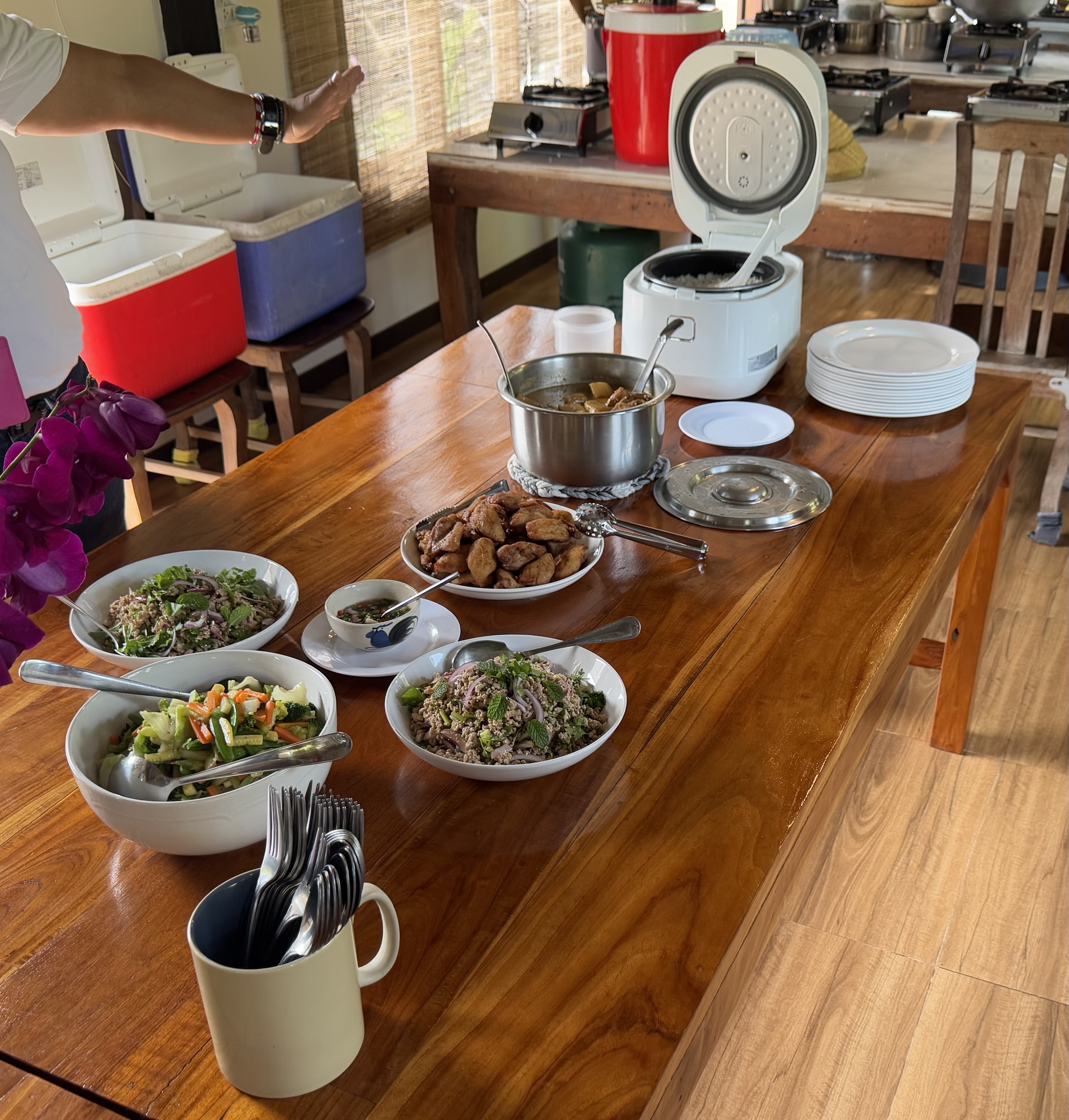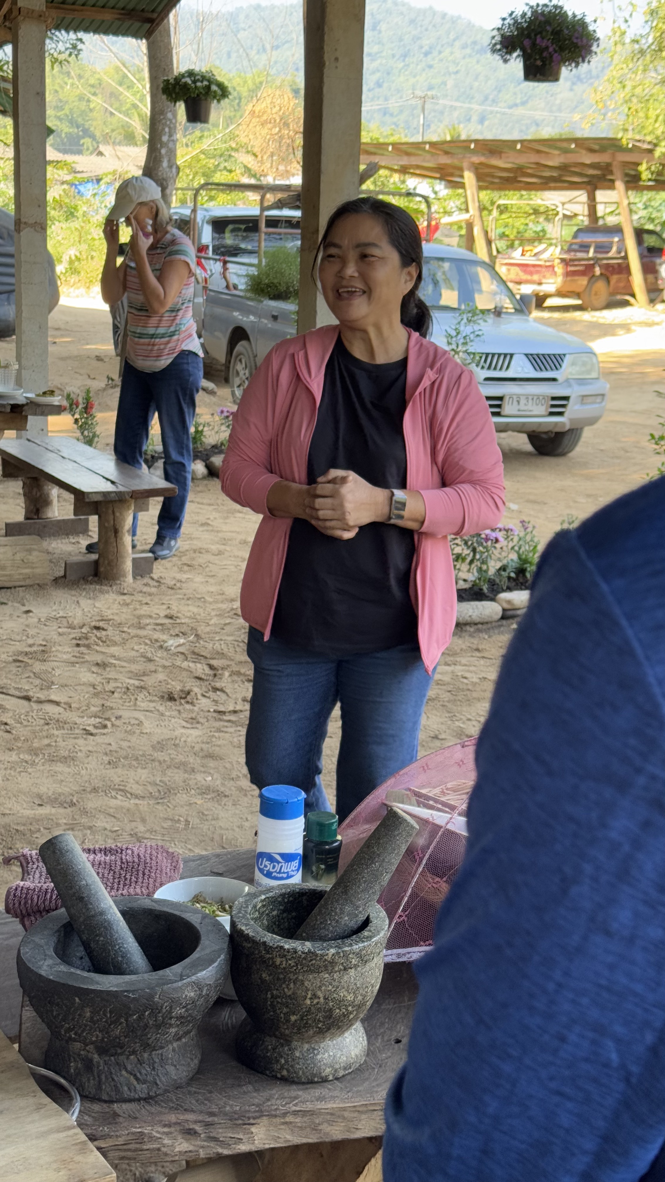 On our next food-prep stop, both the setting and the lessons were authentically rustic and hands-on. Stop Two is open-air, on the shores of the Mae Taeng River, a bit north of Chiang Mai city.