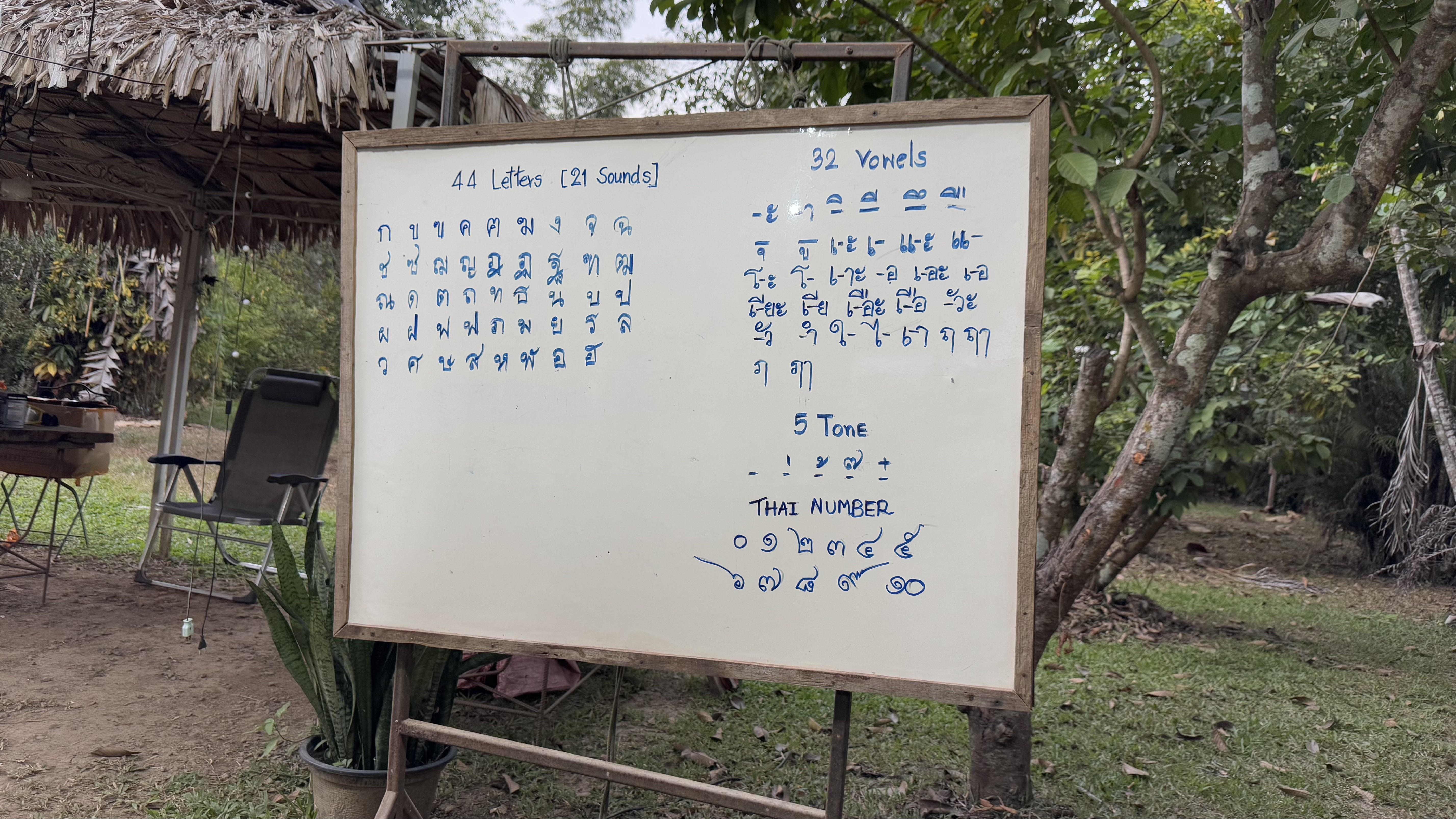 There are 21 consonant sounds (although there are 44 consonant letters — you just have to know which to use), and 32 vowels. 32 vowels! Oh, and there are five tones, which our Western ears can’t even hear.