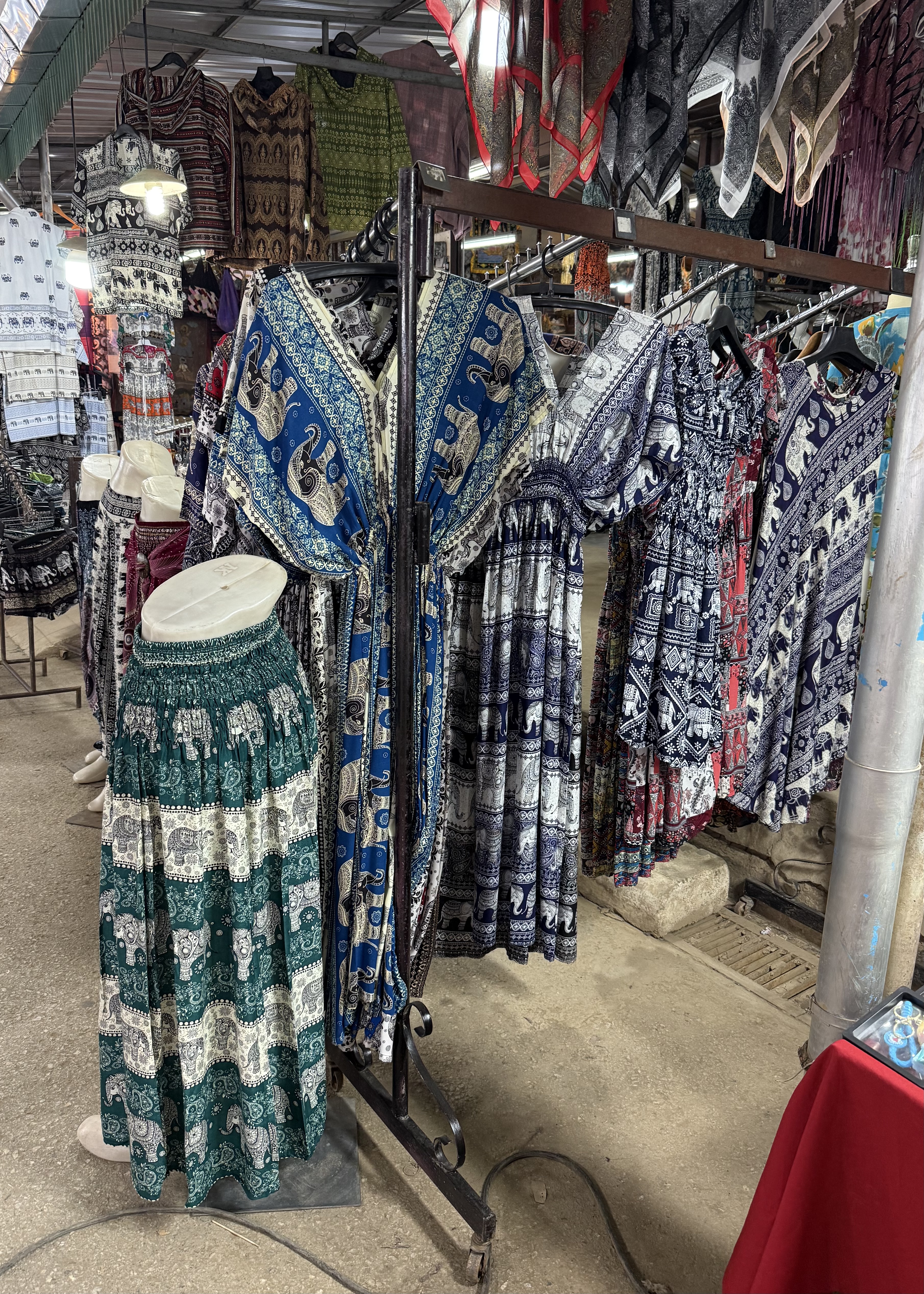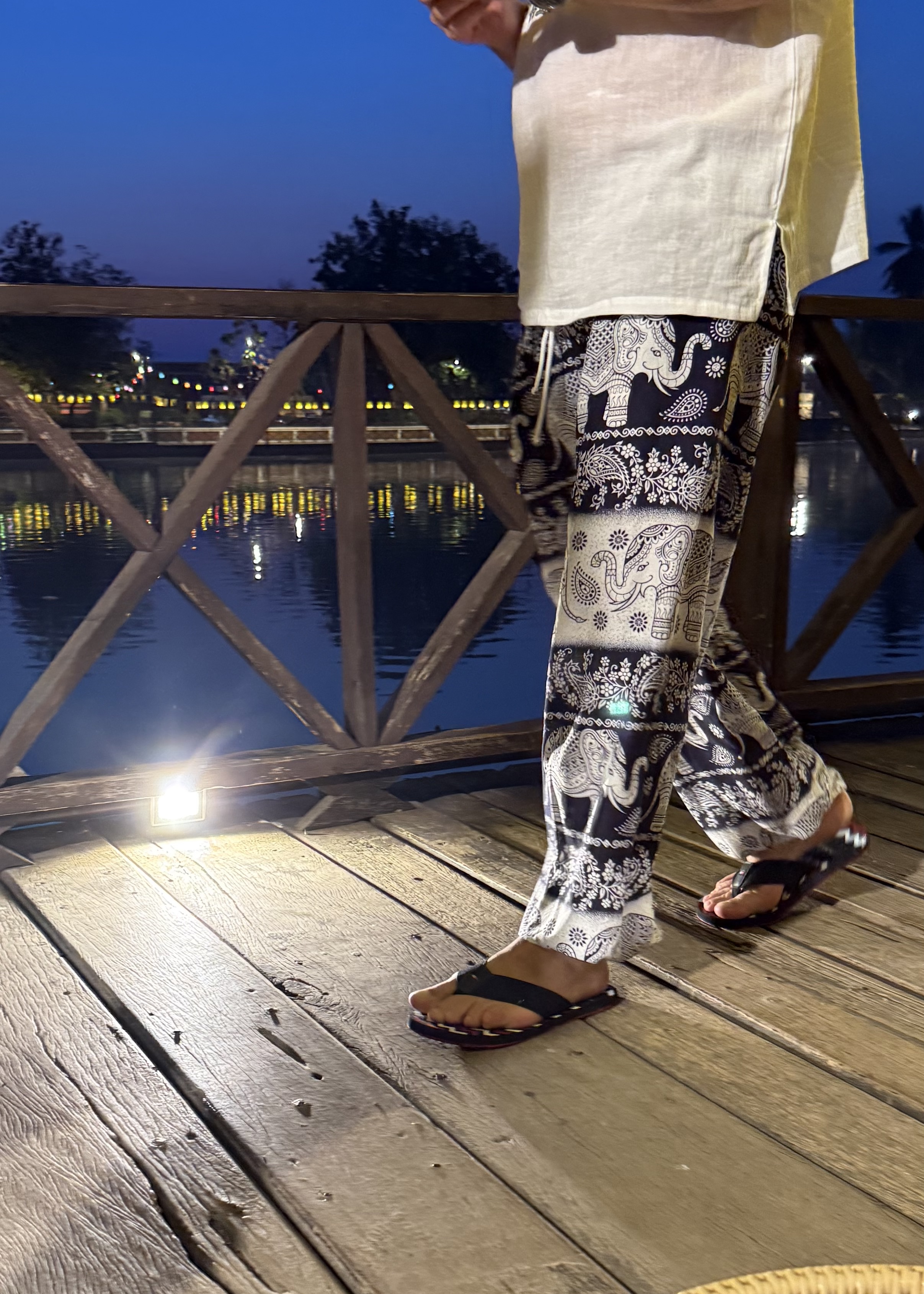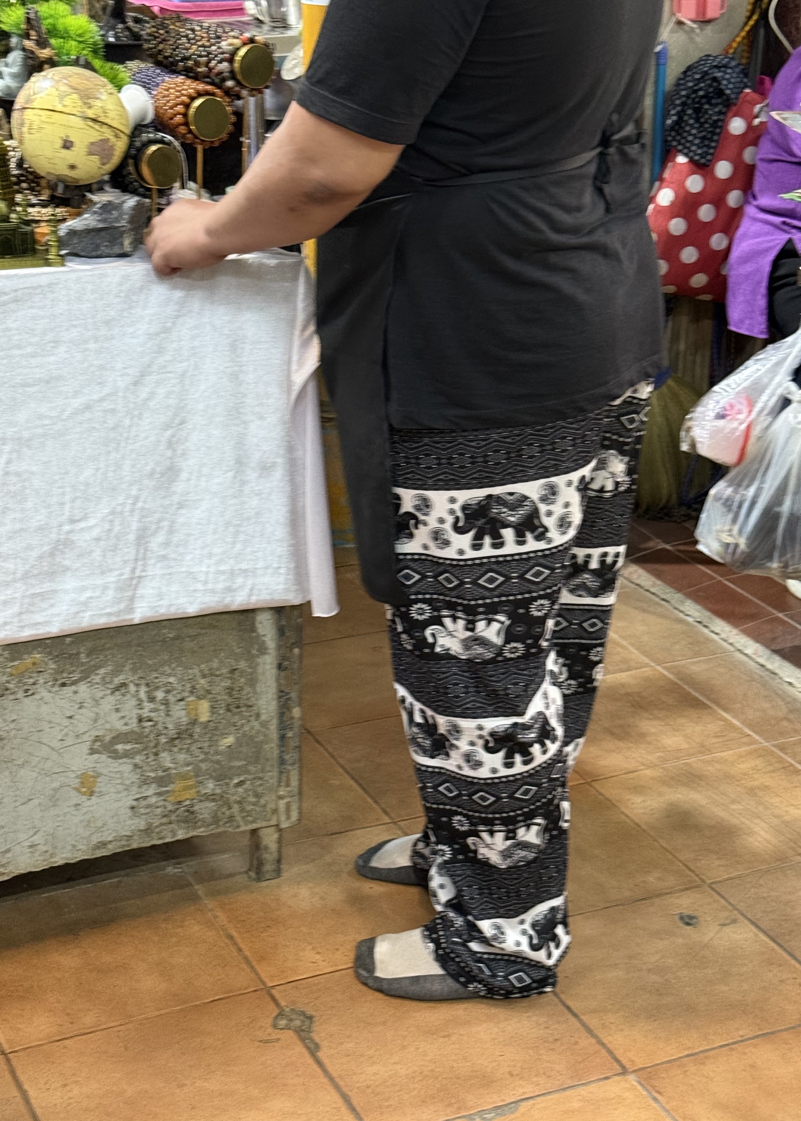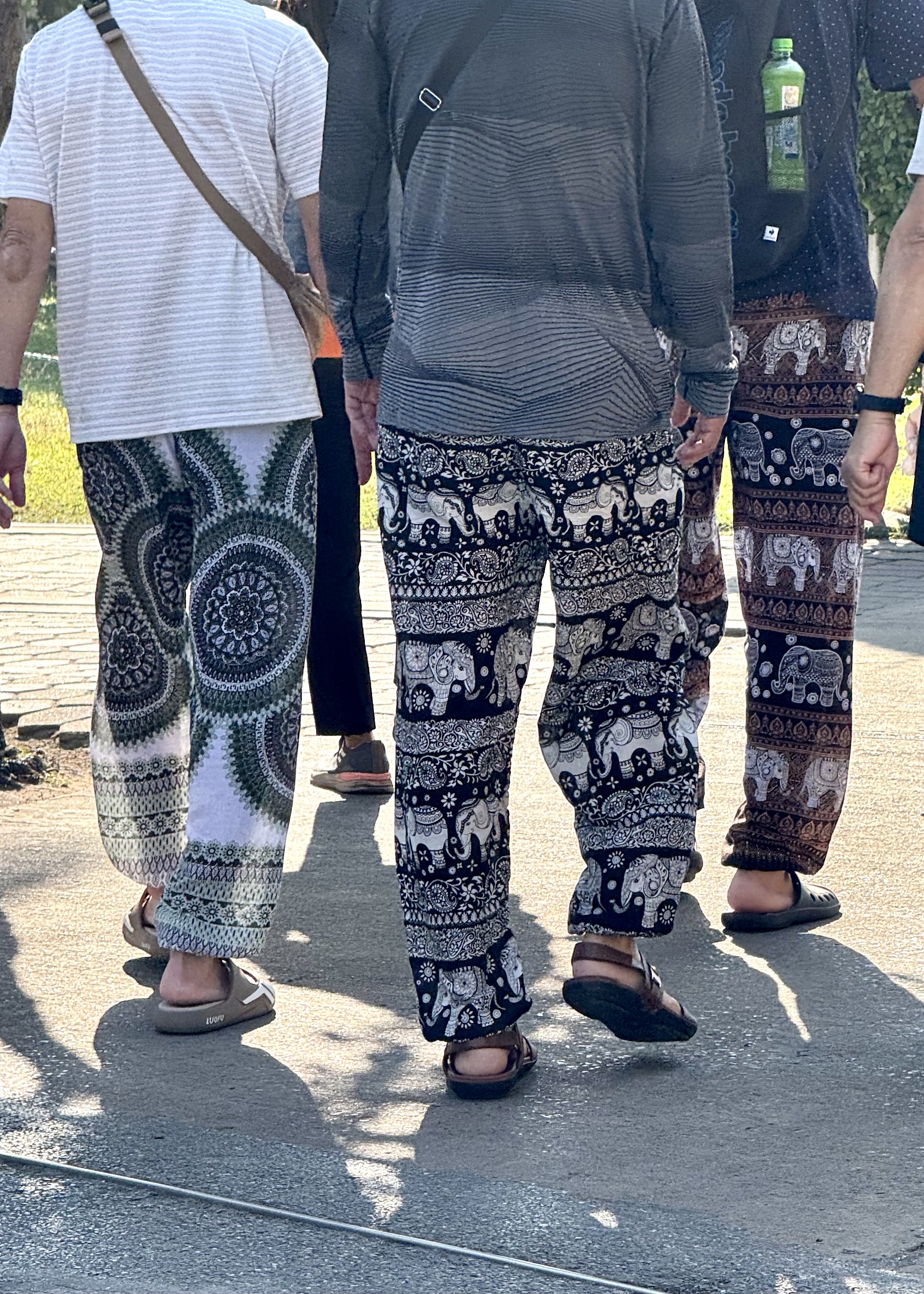 In all the tourist areas, and on most of us fellow tourists — and even on many locals — there are delightful elephant pants, and elephant shirts and elephant dresses!