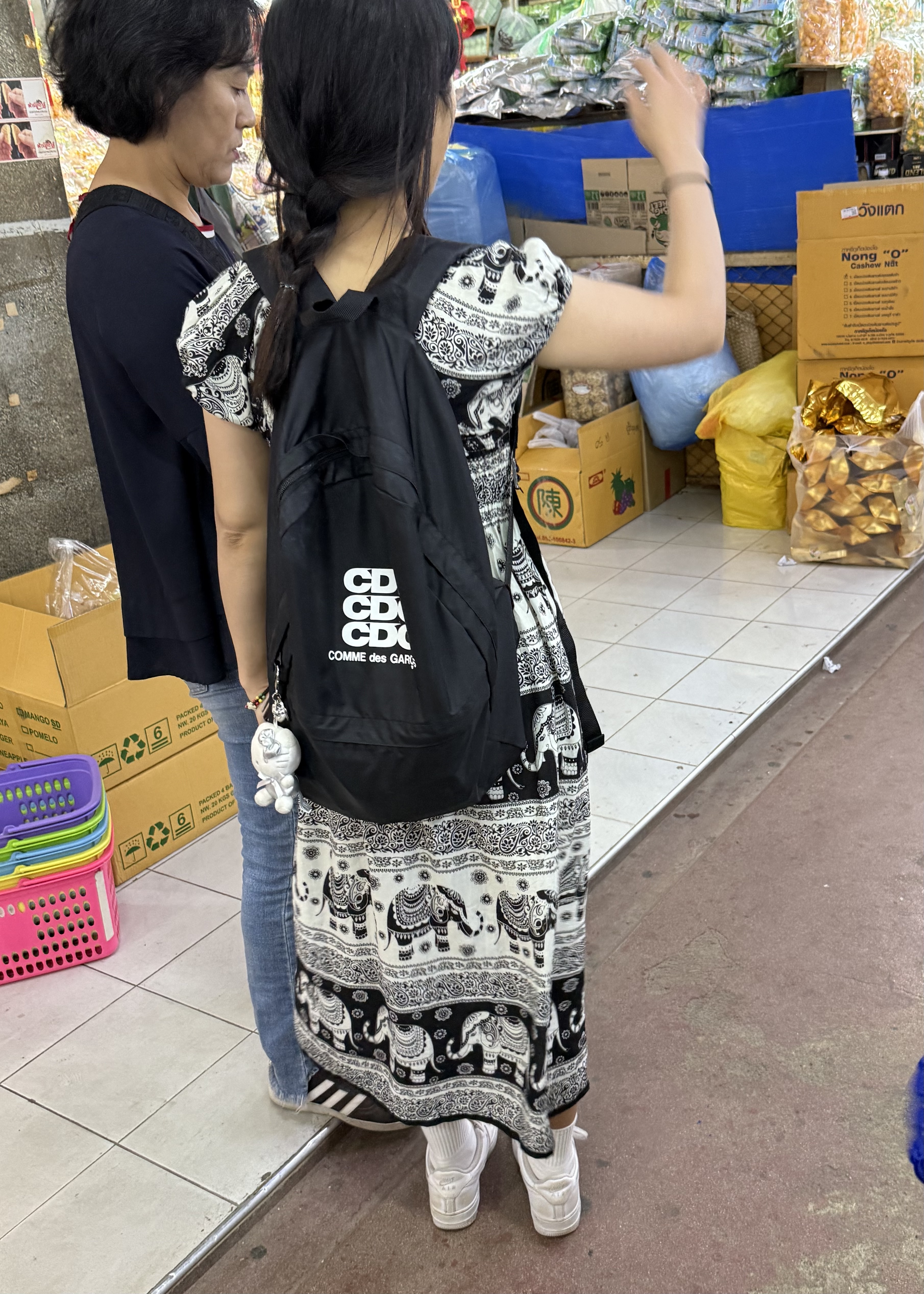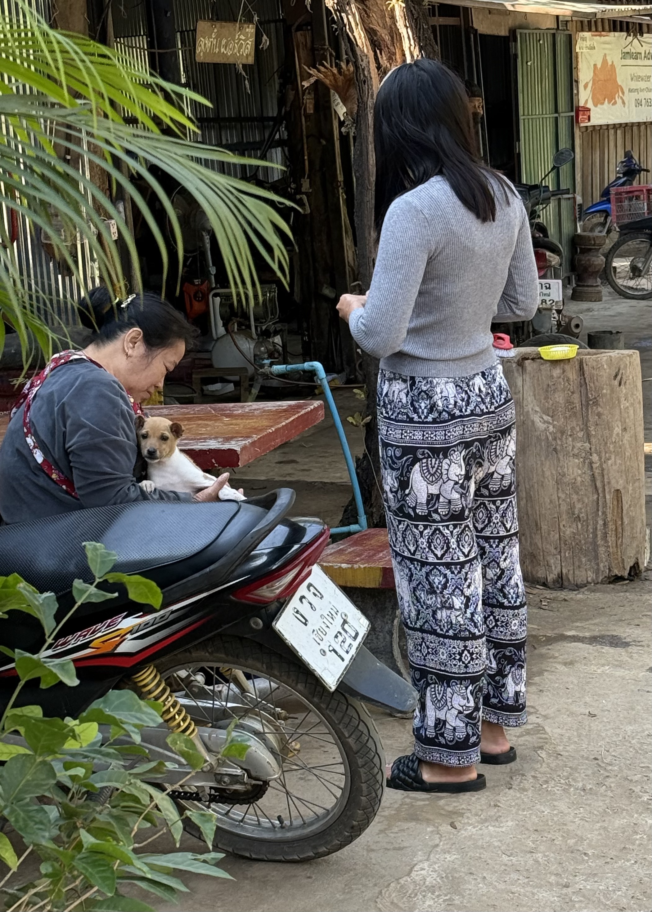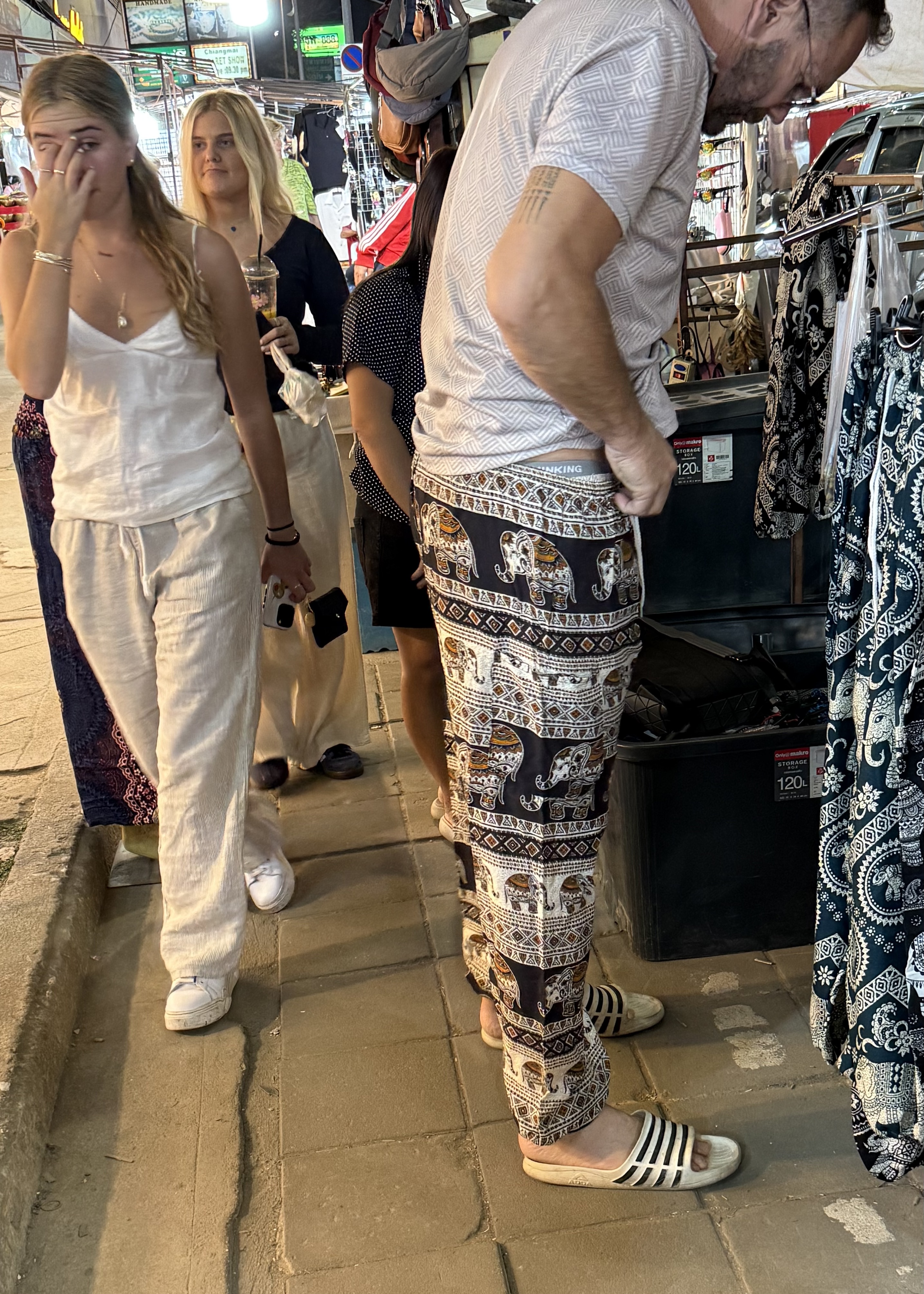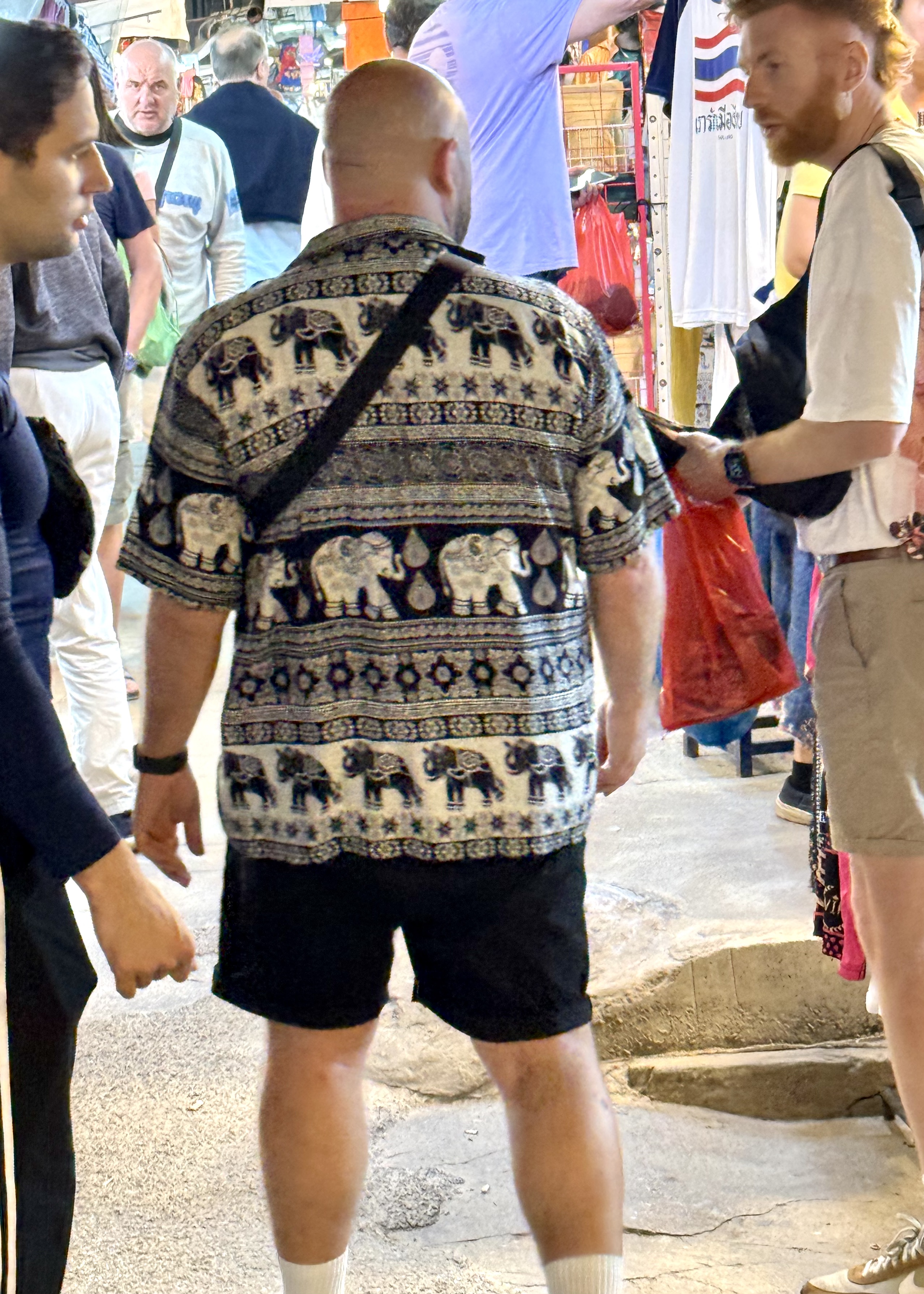In all the tourist areas, and on most of us fellow tourists — and even on many locals — there are delightful elephant pants, and elephant shirts and elephant dresses!