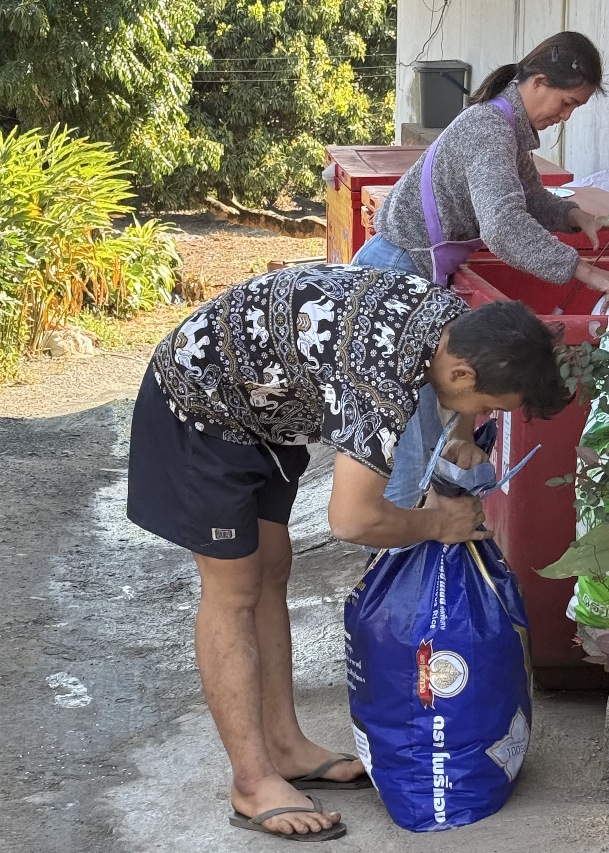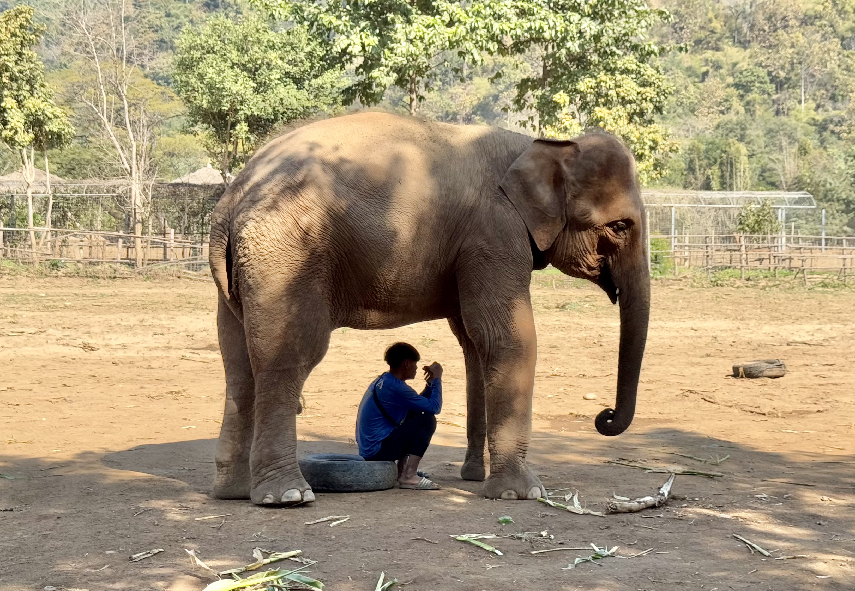 Mahout is the term for the person who works uniquely with an elephant. Each mahout works 6 days out of 7. On their day off, one of their colleagues steps in. Some of the elephants are clearly not happy when their mahout is absent. In addition, some elephants show jealous behavior if they see their mahout giving another elephant attention.