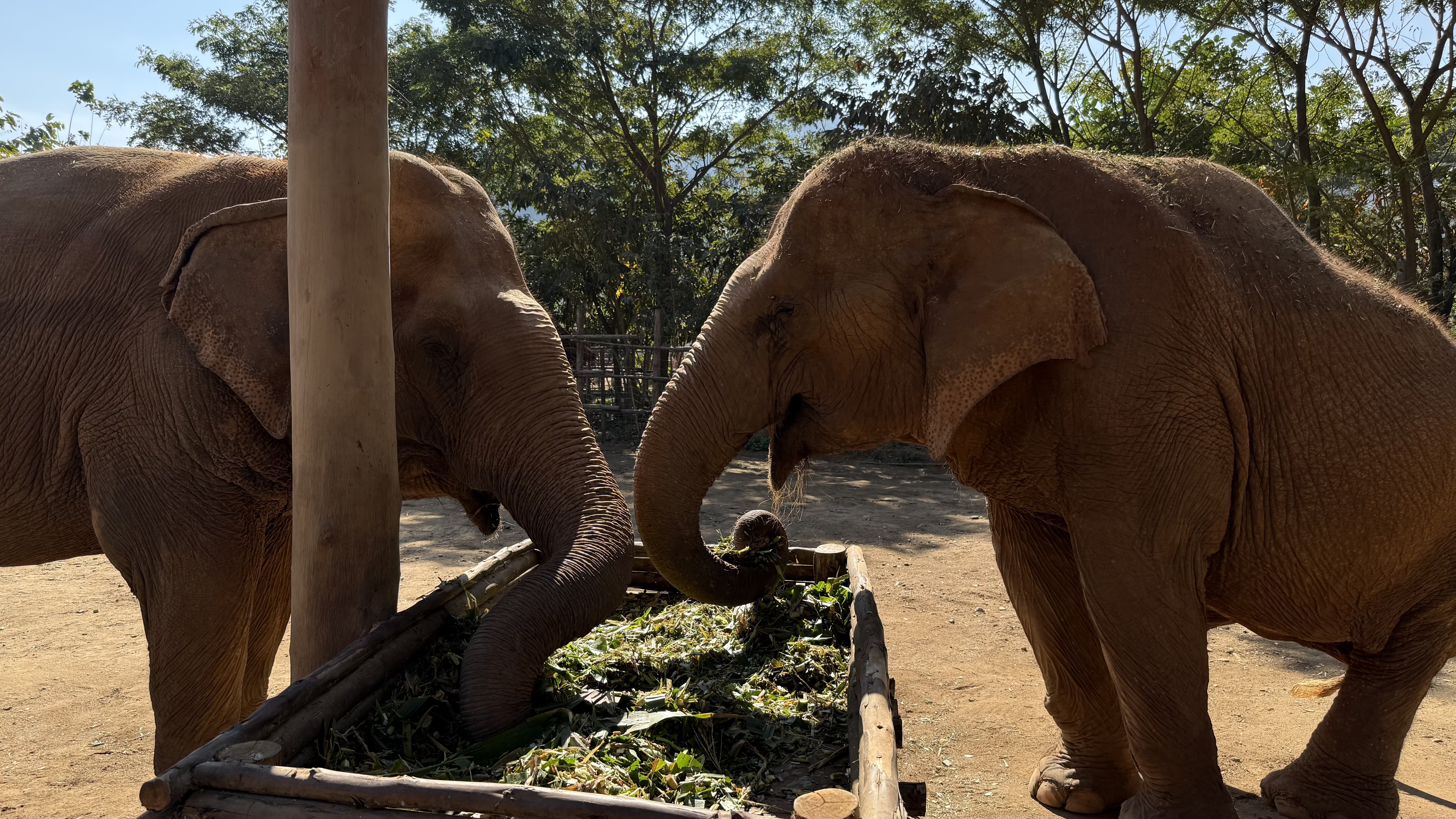 We watched an elderly blind elephant feed with the help of her “best friend.”