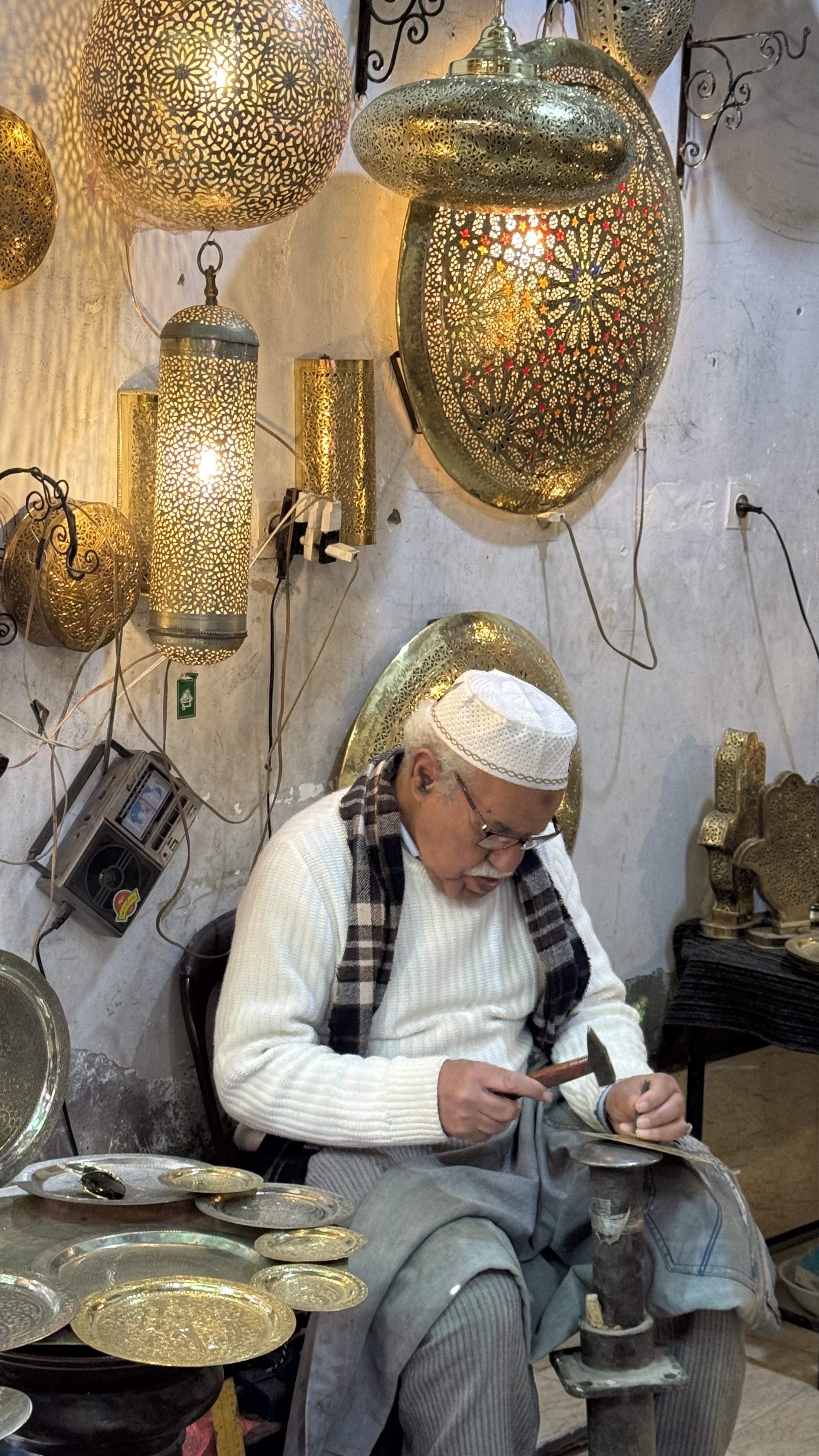 We visited Souk El Haddadine, which is a little district where metalworkers were doing everything from welding to forming and perforating metal. We loved this description on a panel sitting in the middle of all sorts of metal working: